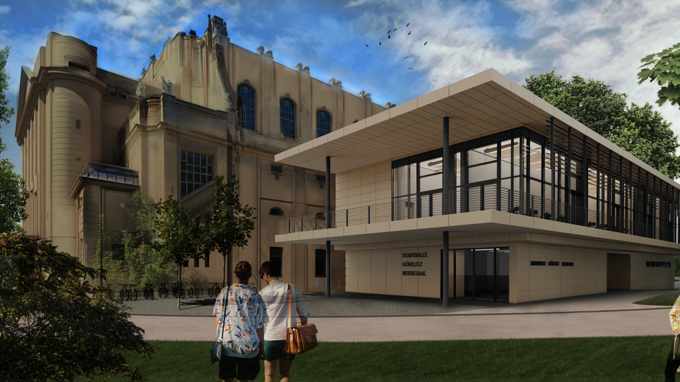 Bürgerumfrage in Görlitz: Rotorange soll der Anbau der Stadthalle leuchten