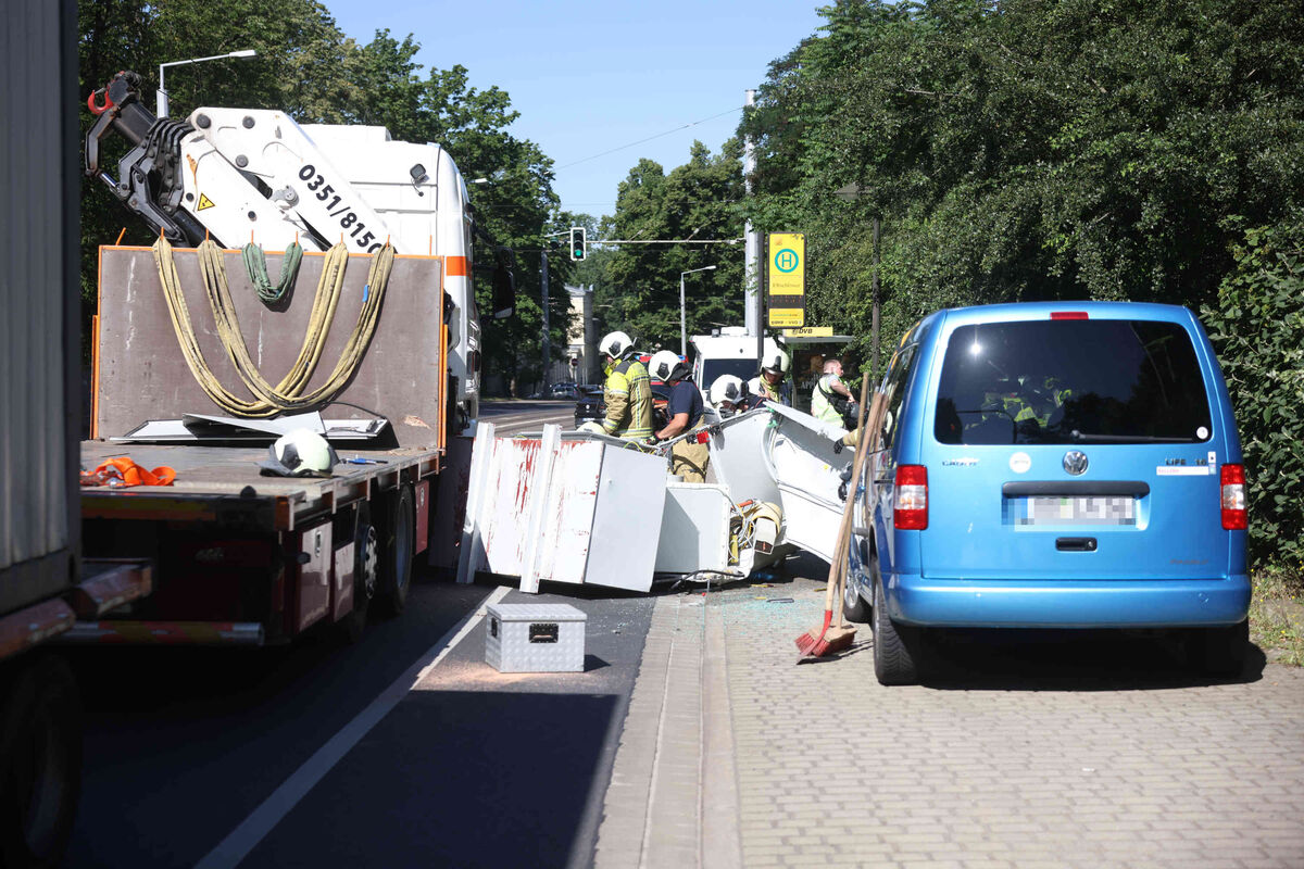 Bautzner Straße: Container-Teil fällt von LKW auf Auto
