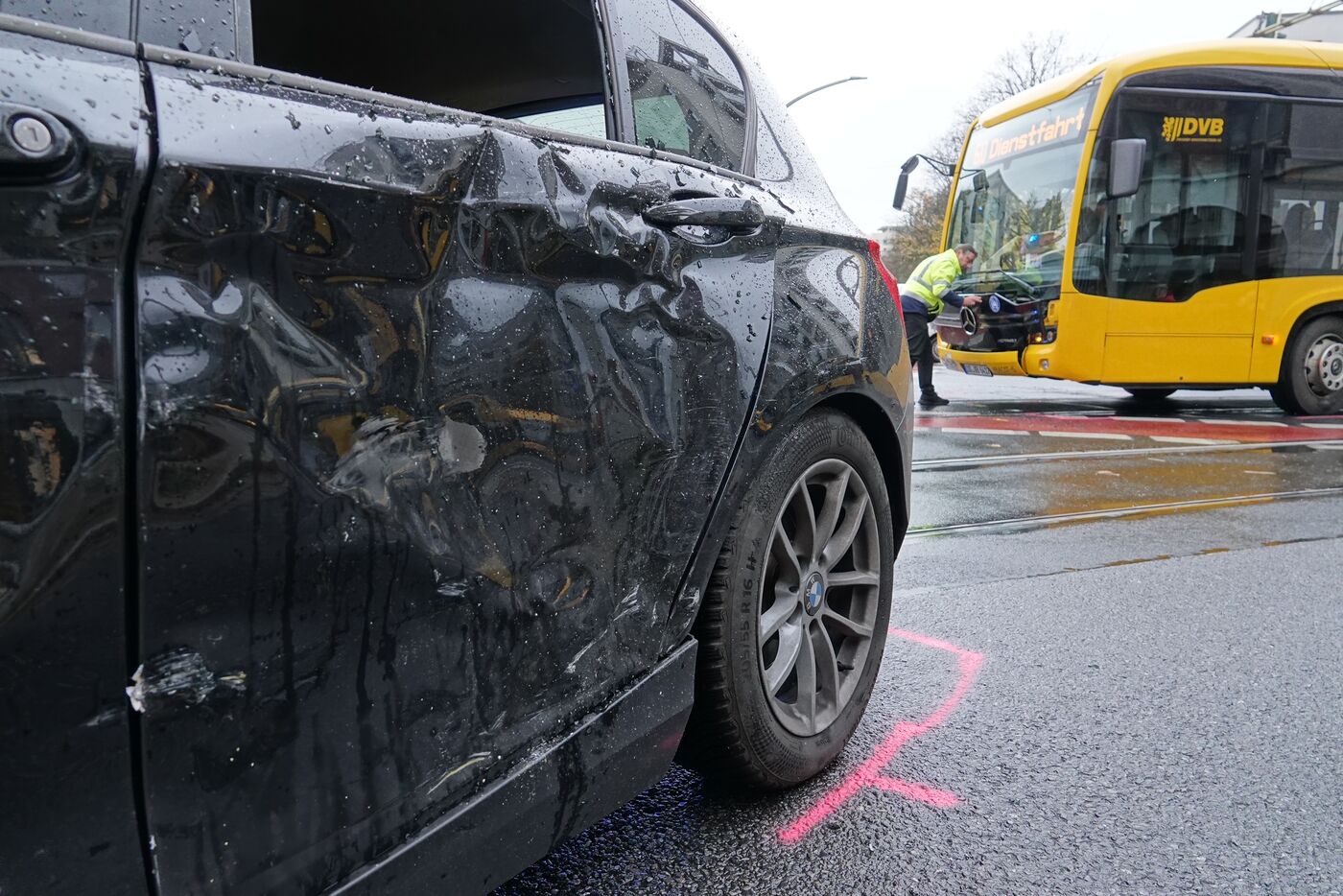 Bei einem Unfall zwischen einem Auto und einem Linienbus in Dresden sind sieben Menschen verletzt worden. Wie uns Polizeisprecher Rocco Reichel sagte, war ein 28 Jahre alter Autofahrer am Dienstagmittag im Kreuzungsbereich der Hertha-Lindner-Straße/Freiberger Straße gegen einen Bus der Linie 68 gestoßen. Der BMW soll vor dem Bus gewendet haben.