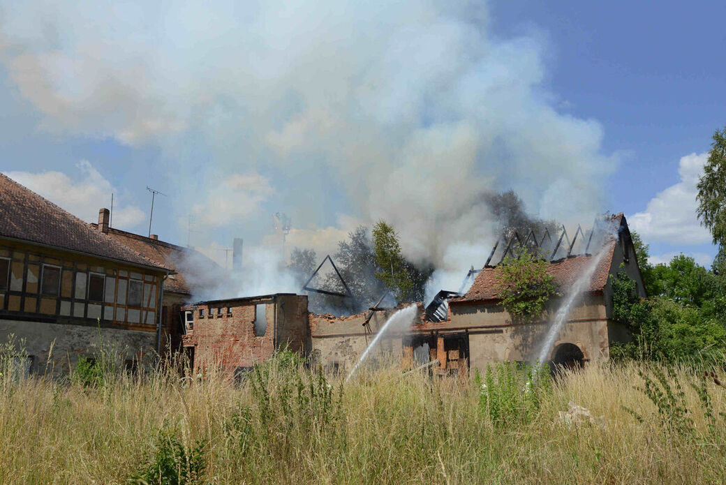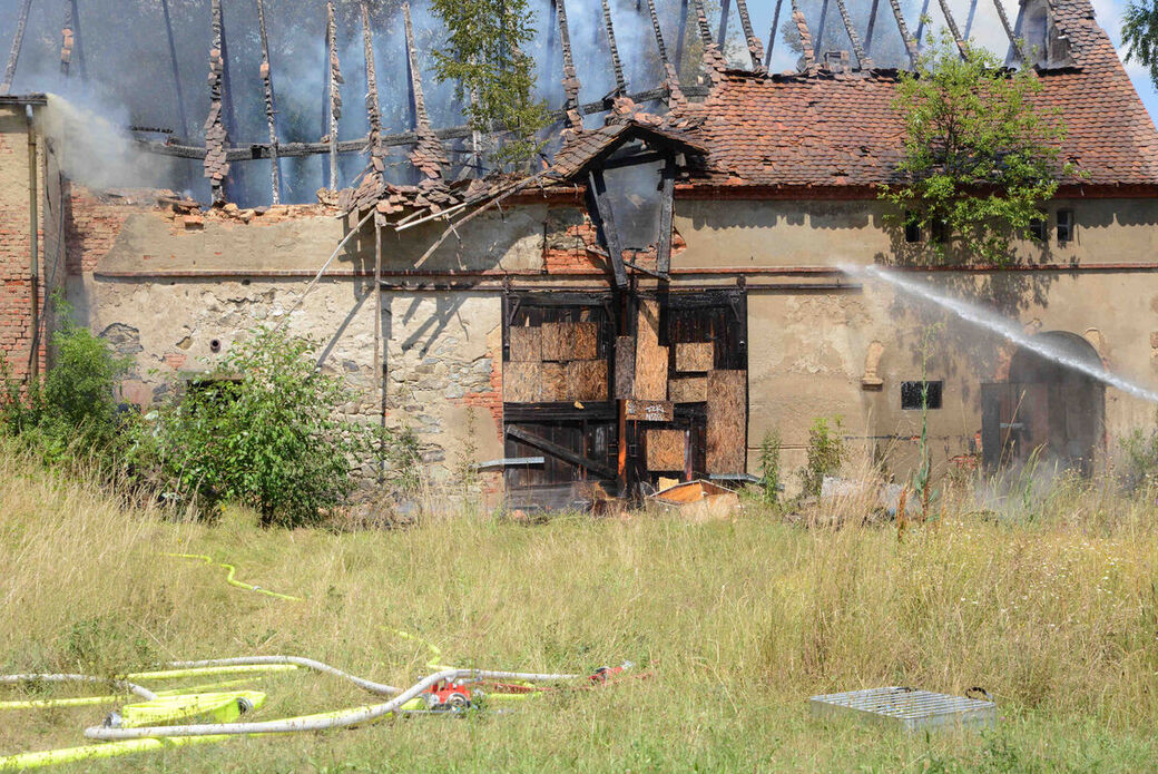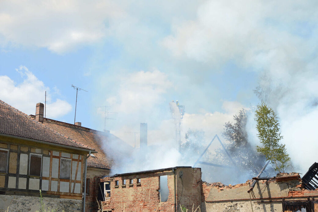 Dachstuhlbrand in alter Molkerei in Niederoderwitz