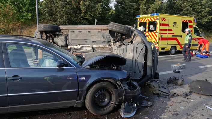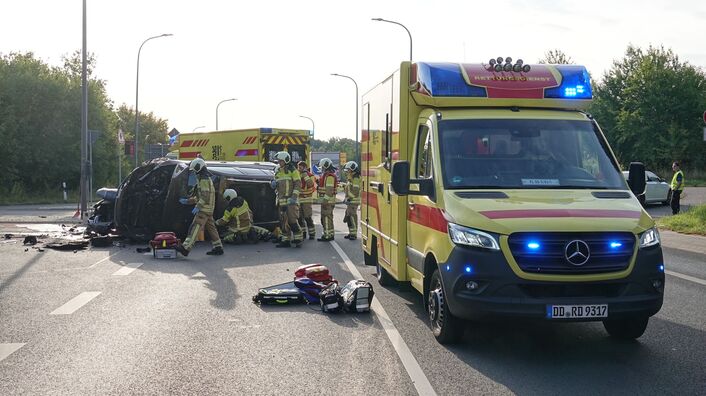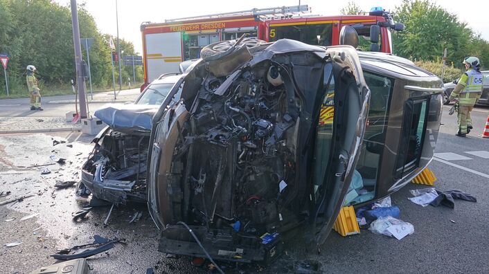 Ein Unfall auf der B170 im Kaitzgrund in Dresden hat am Donnerstagmorgen für Probleme im Berufsverkehr gesorgt. In Höhe der Stuttgarter Straße waren kurz nach 7 Uhr aus noch unbekannter Ursache ein VW-Tiguan und ein VW-Passat kollidiert. Ein Fahrzeug kippte in der Folge auf die Seite. Die 55 Jahre alte Fahrerin schaffte es nach Angaben der Feuerwehr von selbst aus dem Auto. Sie wurde leicht verletzt. Der 42 Jahre alte Fahrer des anderen VW erlitt bei dem Unfall schwere Verletzungen. Die beiden Autos sind Schrott.