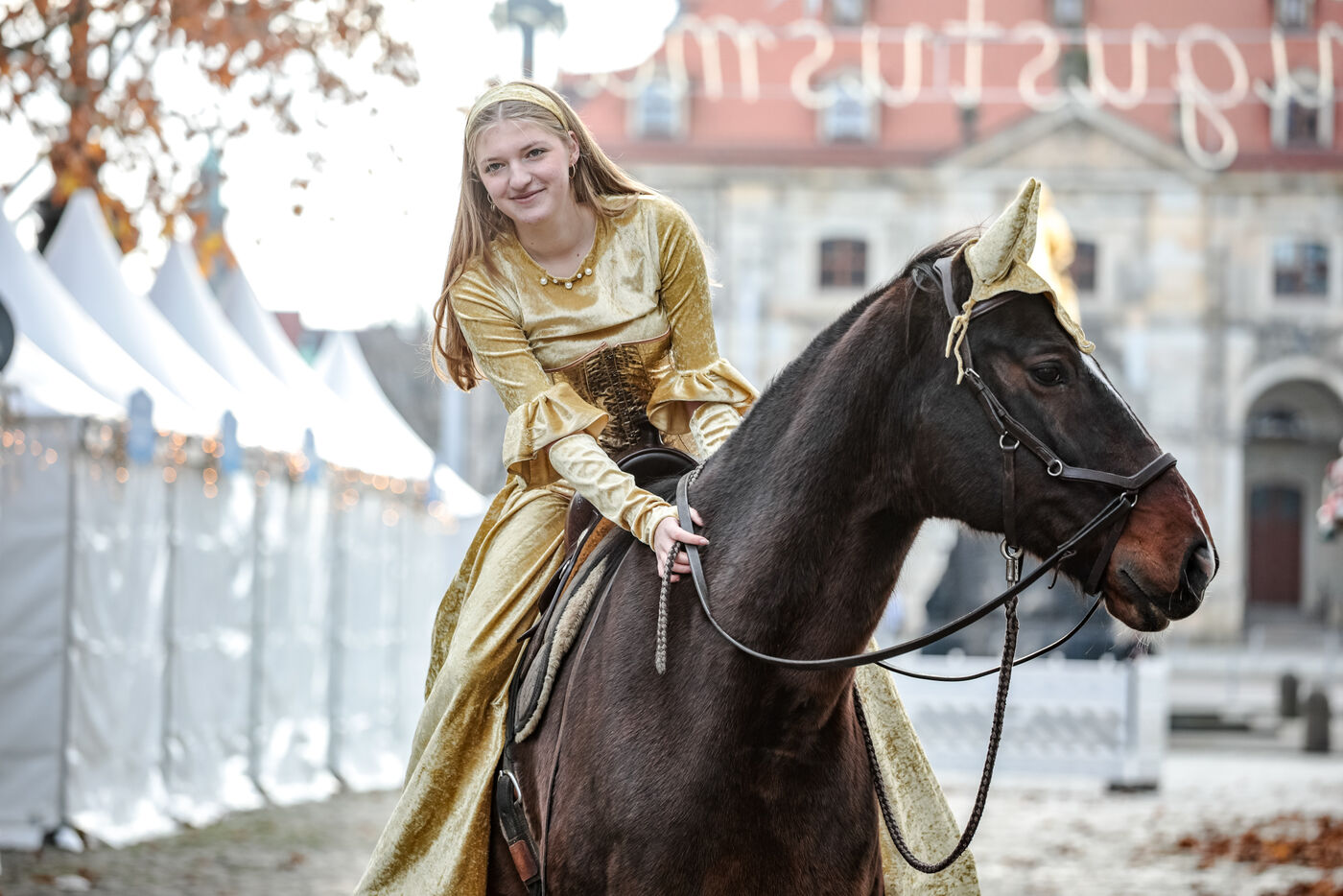 Und dieser hat eine neue Repräsentantin: Ab sofort übernimmt die 17-jährige Emma Börner aus Dresden das Amt der Goldenen Reiterin. Sie ist Abiturientin am Romain-Rolland-Gymnasium und aktive Reiterin. Gemeinsam mit Wallach Apollo wird Emma bei der Eröffnung des Marktes am kommenden Mittwoch dabei sein. Der Augustusmarkt gilt als längster Weihnachtsmarkt in Dresden. Nicht nur, weil er sich auf der Hauptstraße über 500 Meter erstreckt, sondern auch, weil der Markt täglich bis 21 bzw. 22 Uhr geöffnet ist und bis zum 4. Januar 2026 dauern wird .Ein besonderes Highlight ist die Silvesternacht, in der der Markt inklusive Musik bis 2 Uhr nachts geöffnet bleibt.