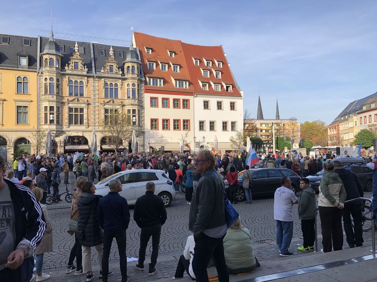 In Zwickau ist am Reformationstag gegen die Bundes- und Landespolitik protestiert worden. Zu der Kundgebung am Nachmittag auf dem Hauptmarkt mit anschließendem Marsch durch die Innenstadt kamen mehrere hundert Menschen. Einige trugen Sachsen- und Russlandfahnen. Lautstarke Zustimmung erhielten Forderungen, wonach die Ampel in Berlin und Sachsens Ministerpräsident Michael Kretschmer „weg“ müssten. Auf Schildern wurden etwa die USA als „Kriegstreiber Nummer 1“ bezeichnet und ein Verbot von Waffenlieferungen in Kriegsgebiete verlangt. Eine Rednerin warnte vor der Gefahr, die nach einer ihr vorliegenden Studie von mRNA-Impfstoffen ausginge.