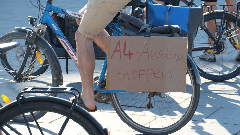 Demo-Verbot auf der A4 - Umweltschützer protestieren in Fahrradkorso