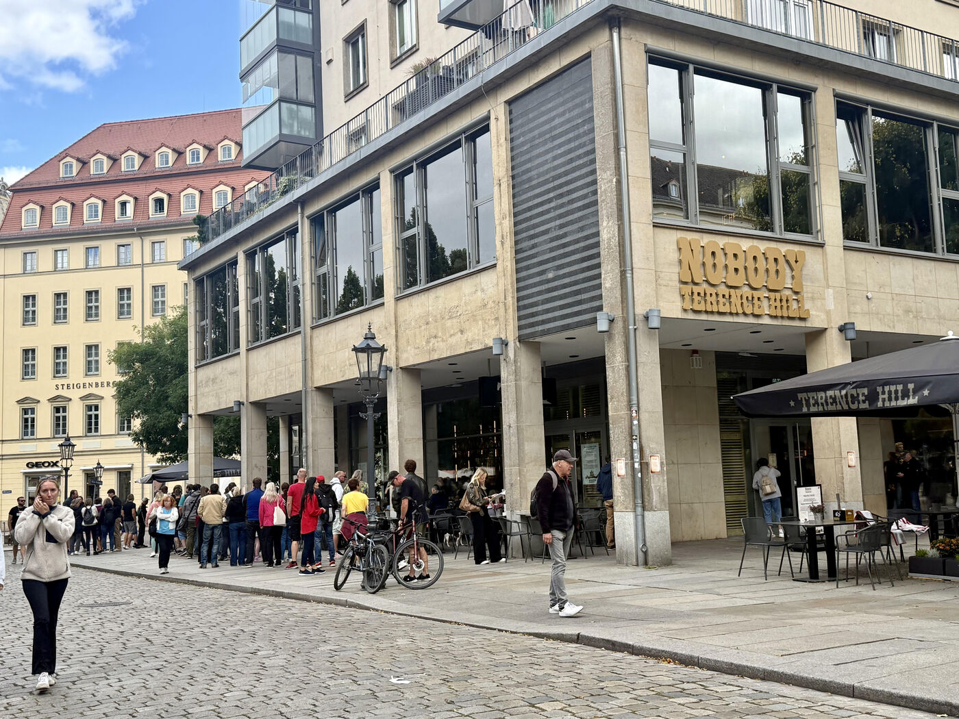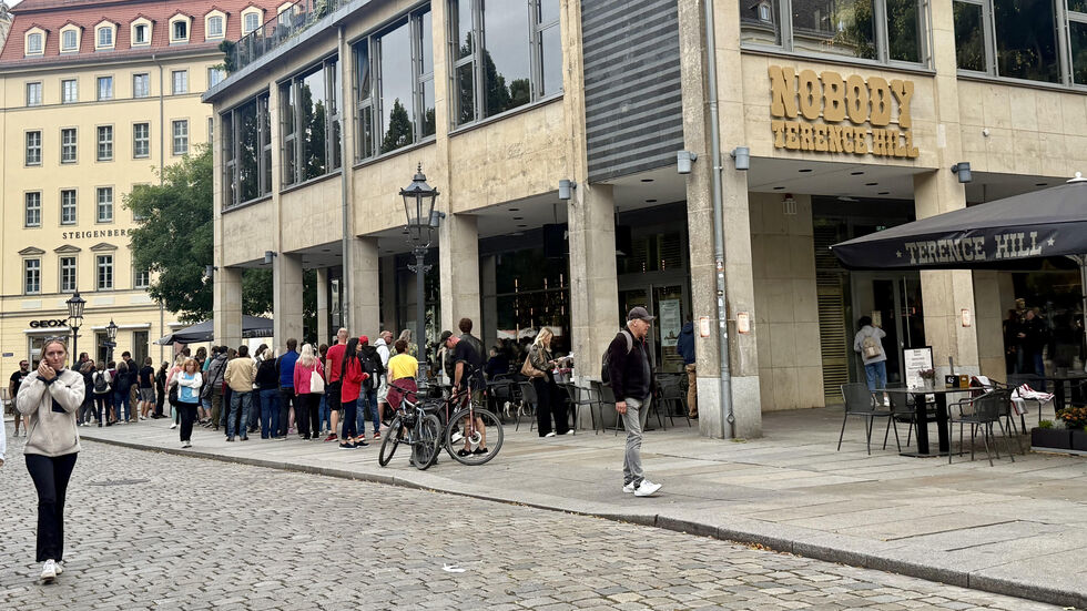 Der Wilde Westen hat die Altstadt übernommen: Die Eröffnung des Restaurants „Nobody“ am Freitagmorgen sorgte auf der Wilsdruffer Straße für großen Andrang. Mitinhaber ist kein Geringerer als Terence Hill.
