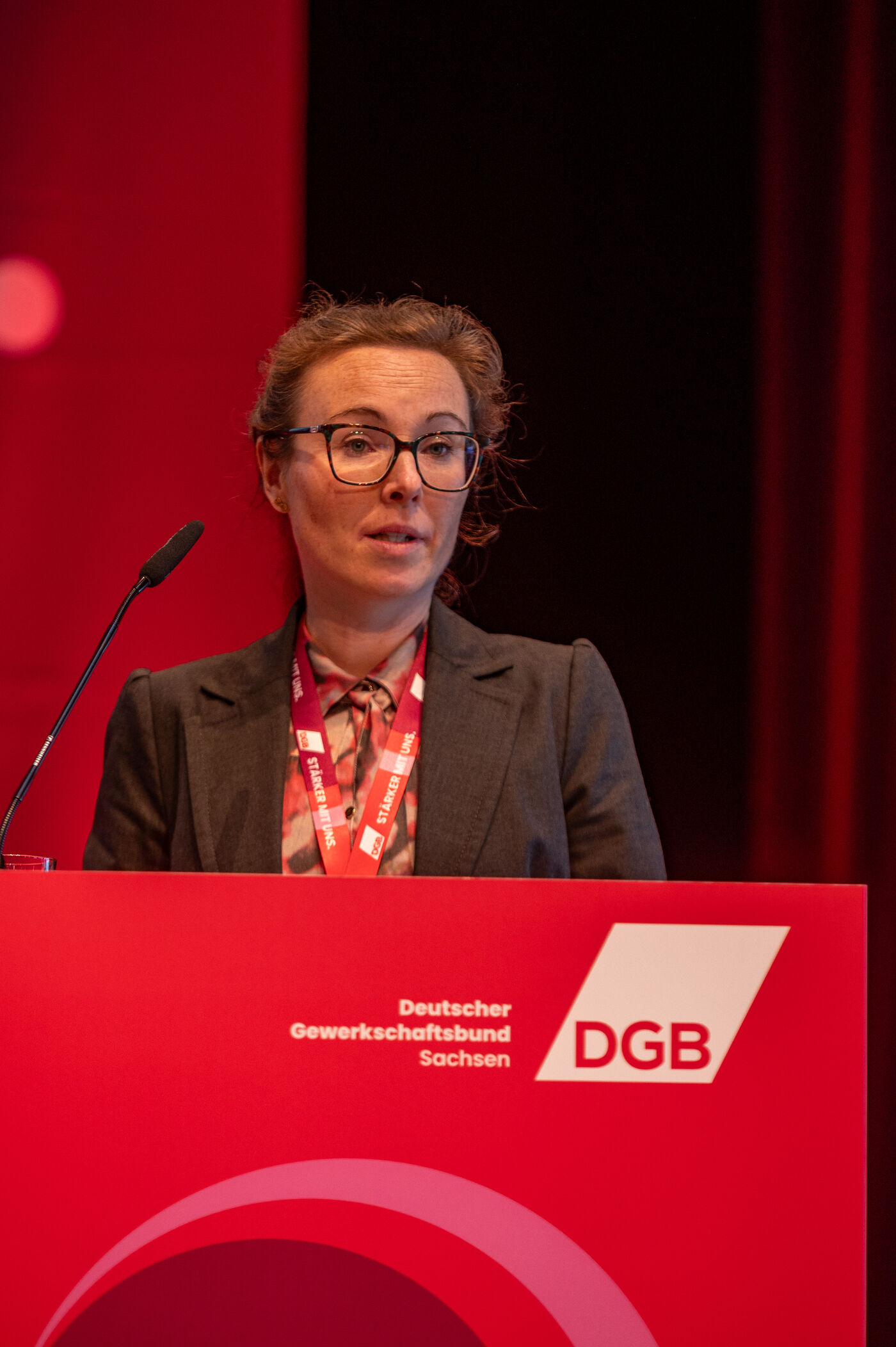 In ihrer Bewerbungsrede stellte Eberhardt die besondere Bedeutung Südwestsachsens als Wirtschafts- und Lebensregion heraus und betonte die Verantwortung des DGB im Wandel. „Südwestsachsen ist meine Heimat. Ich möchte, dass diese Region auch in Zukunft ein lebenswerter Ort bleibt – mit sicheren Arbeitsplätzen und Perspektiven für die Menschen und ihre Familien“, sagte sie.