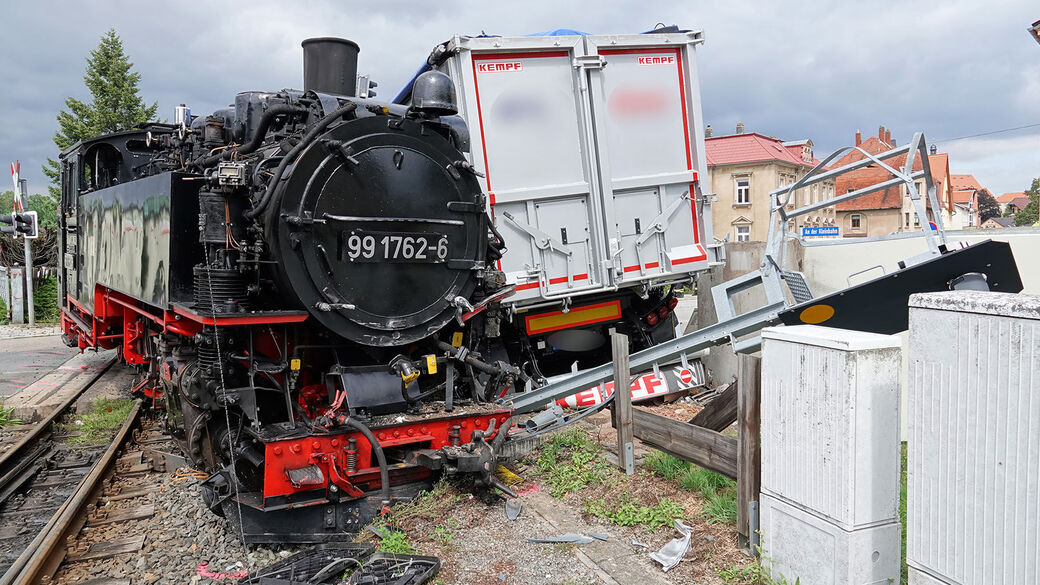 Dippoldiswalde: LKW kracht in Weißeritztalbahn