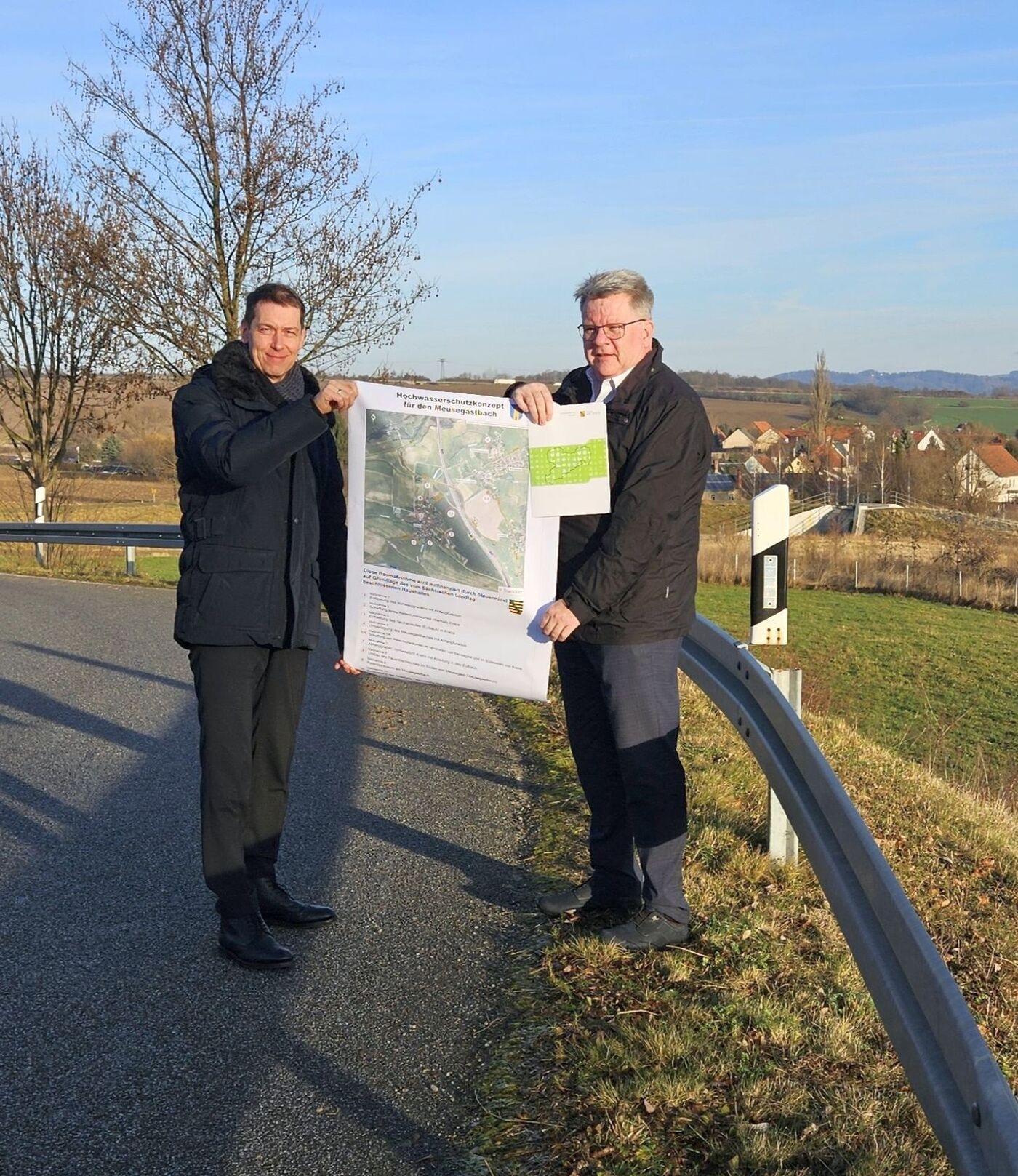 - LDS-Präsident Béla Bélafi und der Dohnaer Bürgermeister Dr. Ralf Müller bei der Übergabe des Zuwendungsbescheides (v. l.).