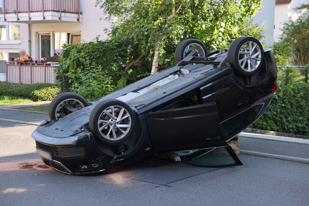Dresden-Weißig: Auto landet auf dem Dach