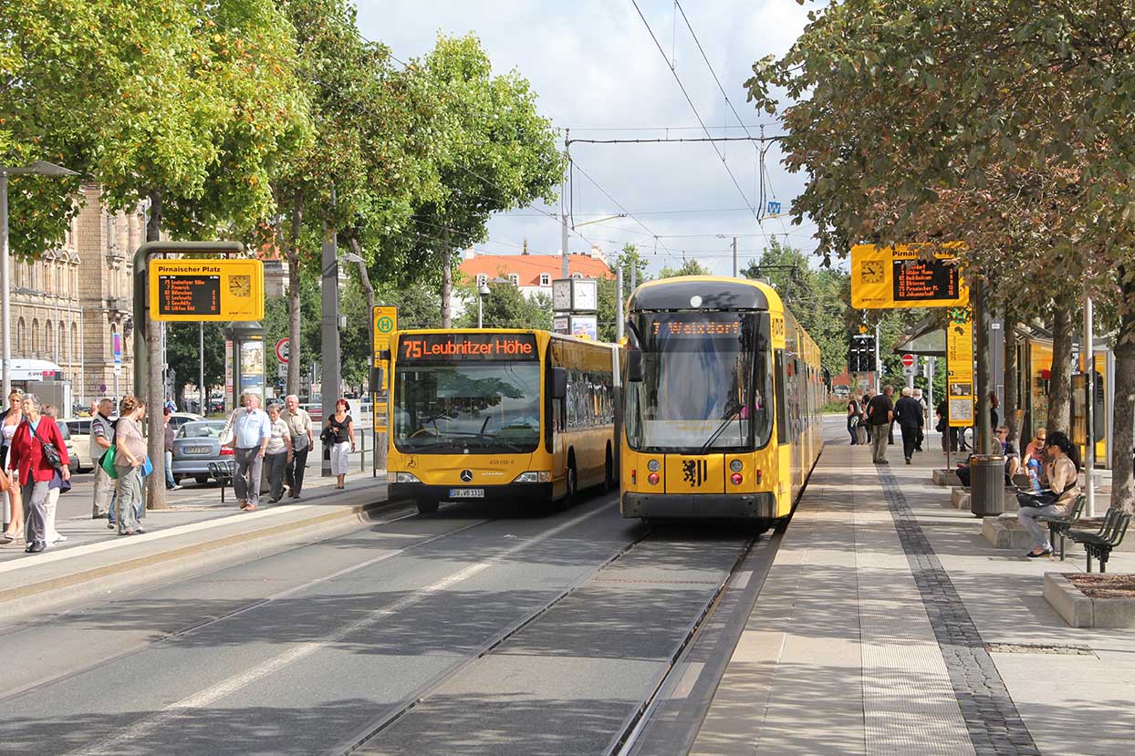 Die Straßenbahnen und Busse der Dresdner Verkehrsbetriebe fahren ab Samstag wieder nach Standardfahrplan. Damit sind die Linien 1, 2, 8, 9 und 13 wochentags wieder zum üblichen Zehn-Minuten-Takt unterwegs, die Linien 3, 4, 7, 9, 11 und 62 auch samstags.