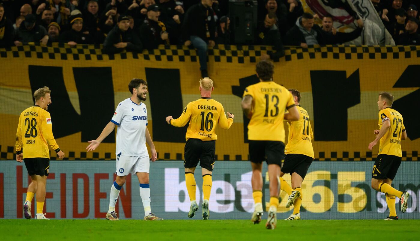 Nils Fröling brachte Dynamo schon nach acht Minuten in Führung. Marcel Beifus (11. Minute) sorgte mit dem ersten Auswärtstreffer in dieser Saison umgehend für den Ausgleich, ehe Lilian Egloff (37.) mit seinem Treffer die Partie für den KSC drehte. Zwar konnte Christoph Daferner (52.) ausgleichen, doch Fabian Schleusener (61.) brachte den KSC wieder in Führung, ehe Dynamo durch Jakob Lemmer(90.+2) den späten Ausgleich bejubelte.