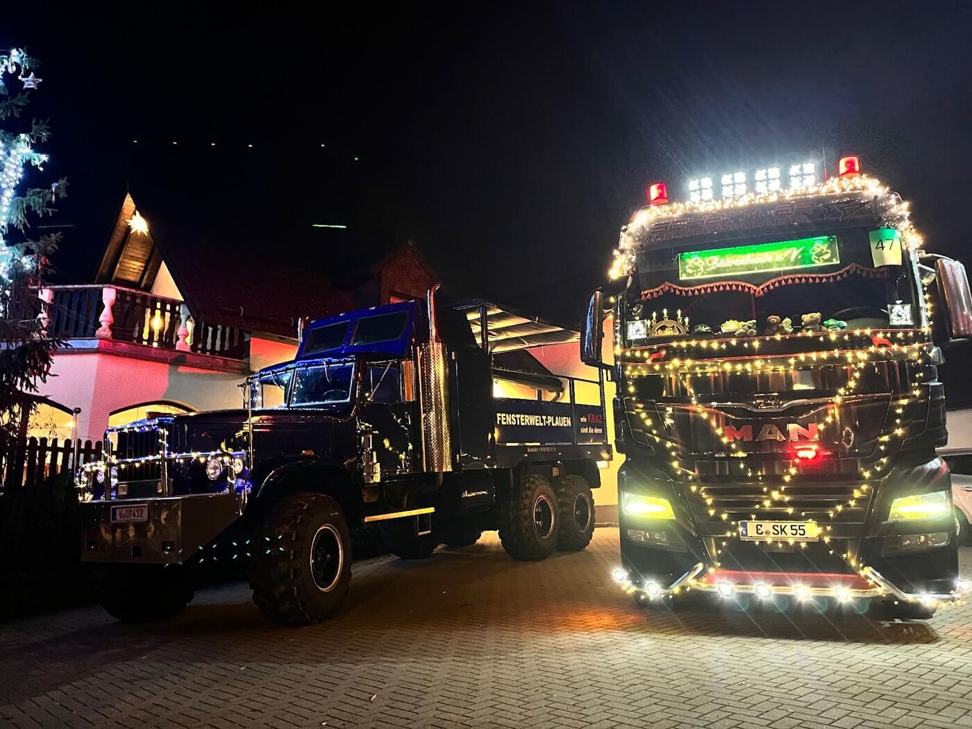 Das Highlight am Abend bildet die Lichterfahrt mit mehreren bunt beleuchteten LKWs. Die Fahrzeuge können auch vorher schon begutachtet werden. Wer will, kann sogar probesitzen und sich mal eine Runde kutschieren lassen. Beginn der Veranstaltung ist um 14:00 Uhr am Gasthof zum Vogelsiedler.