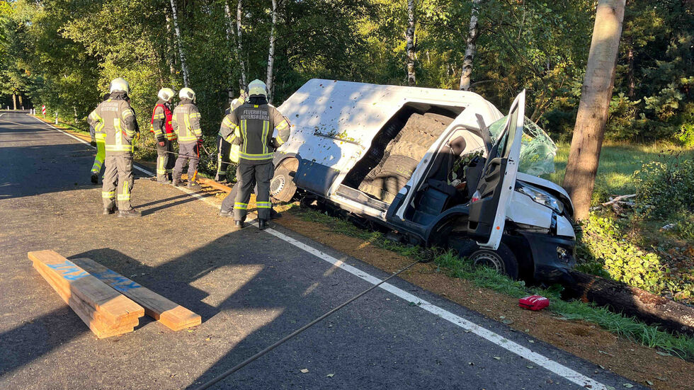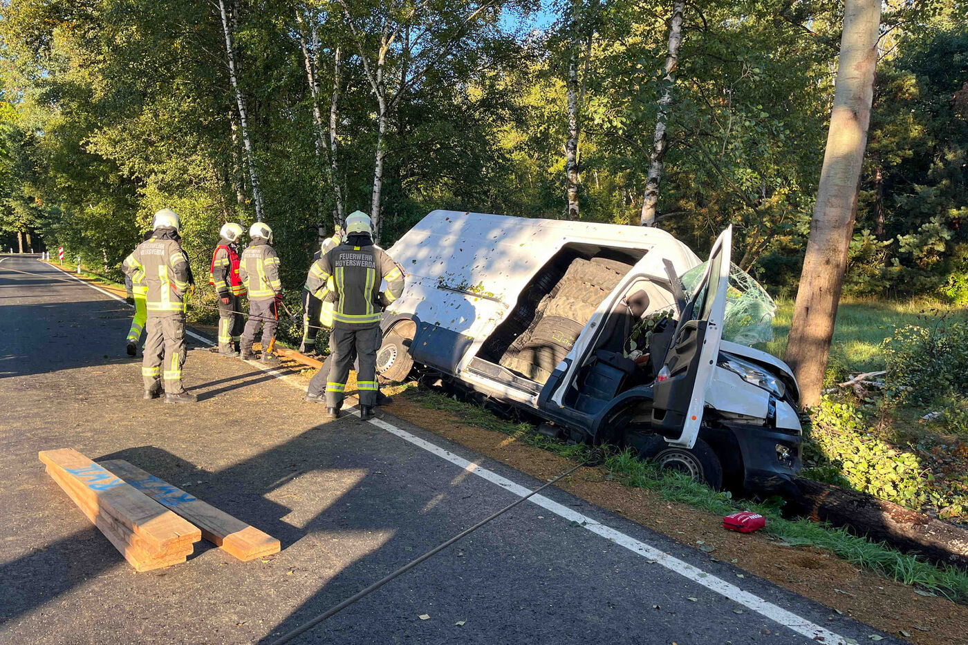 Schwerer Unfall auch bei Elsterwerda. In Plessa sind am Morgen zwei Menschen verletzt worden. Ein Kleintransporter kam von der Straße ab und stieß gegen zwei Bäume. Der 21-jährige Beifahrer wurde reanimiert und anschließend in eine Klinik geflogen. Der 21 Jahre alte Fahrer kam ebenfalls in ein Krankenhaus. Ermittlungen zur Unfallursache wurden aufgenommen.