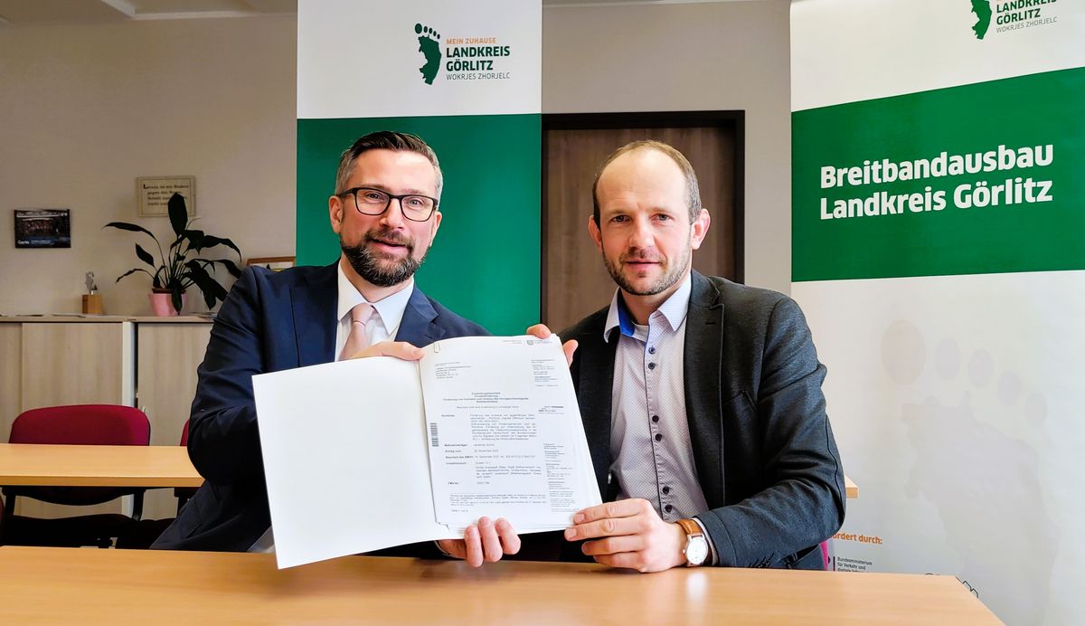 Das Breitbandnetz im Kreis Görlitz wird enger geknüpft. Weitere 30.000 Adresspunkte kommen in den nächsten drei Jahren hinzu. Sie werden in Gebieten errichtet, in denen Firmen und Haushalte nur über eine geringe Bandbreite verfügen. Bund und Land finanzieren den Ausbau mit 250 Millionen Euro. Heute übergab Sachsens Wirtschaftsminister Martin Dulig die Förderschecks in Jänkendorf an Landrat Stephan Meyer.