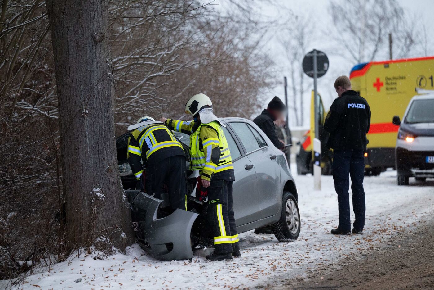 Auf der B 96 bei Zittau schlitterte ein Autofahrer gegen einen Baum. Er wurde ins Krankenhaus gebracht.