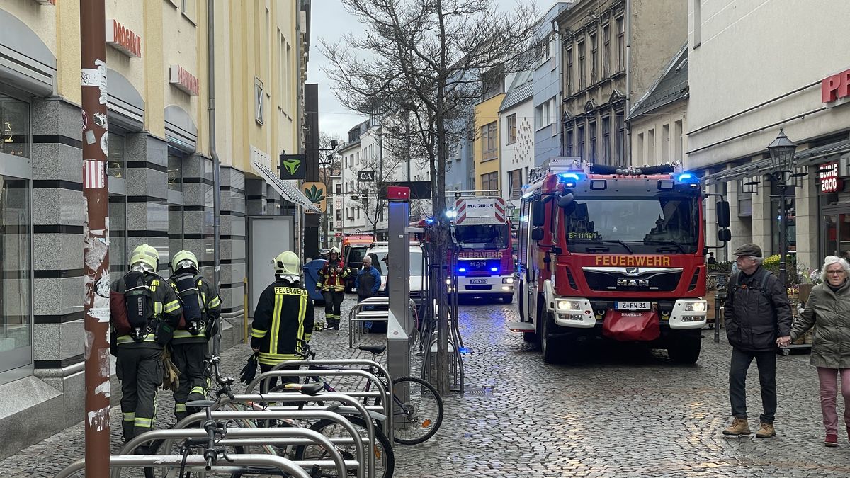 Die Feuerwehr rückte mit 17 Kameraden an und durchsuchte das Gebäude, in dem sich auch die Müller Drogerie befindet.