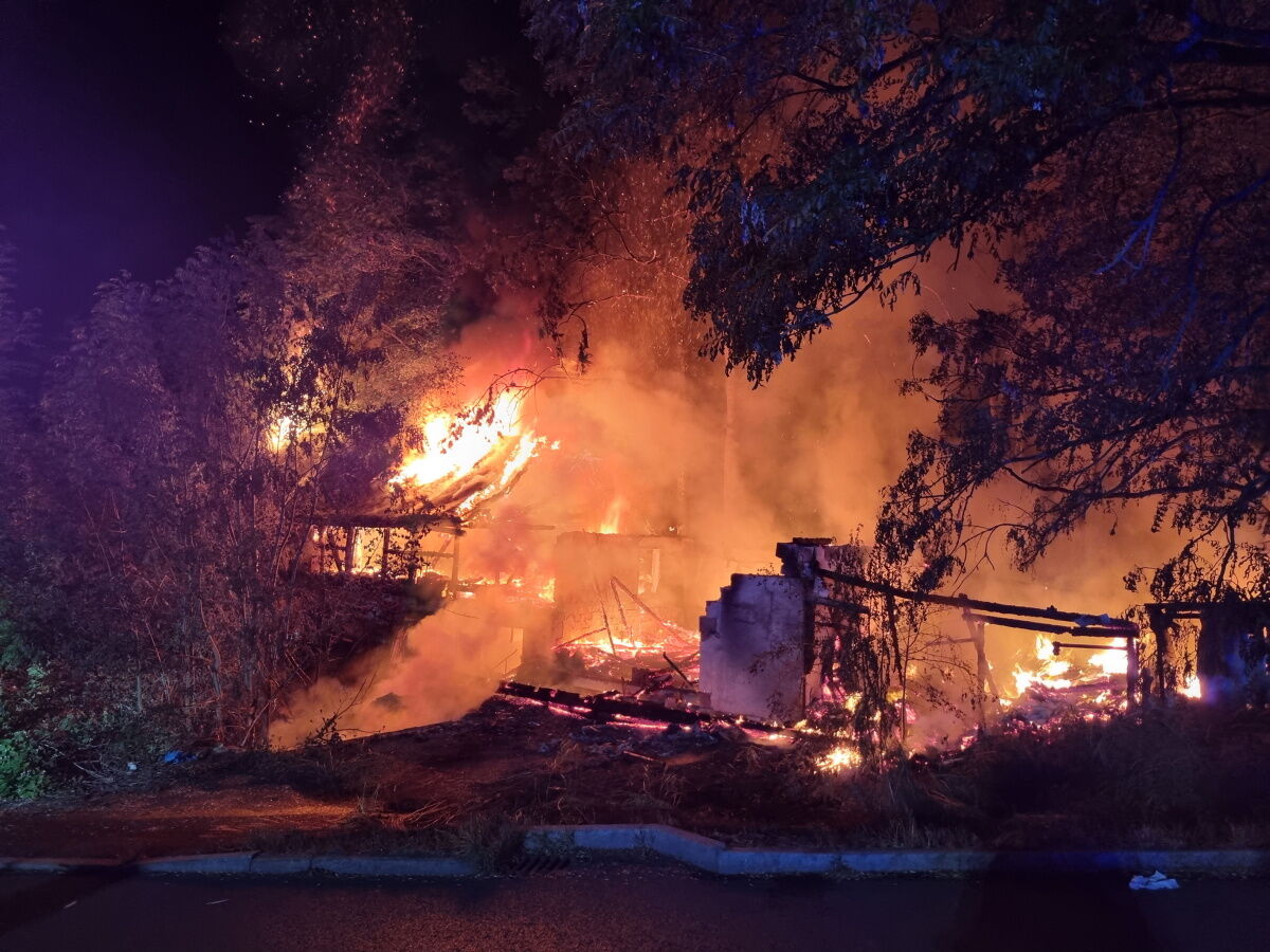 Diesmal stand ein leerstehendes Wohnhaus am Rande eines Wohngebietes in Flammen. Feuerwehren und Anwohner konnten verhindern, dass das Feuer auf die anderen Einfamilienhäuser übergriff.