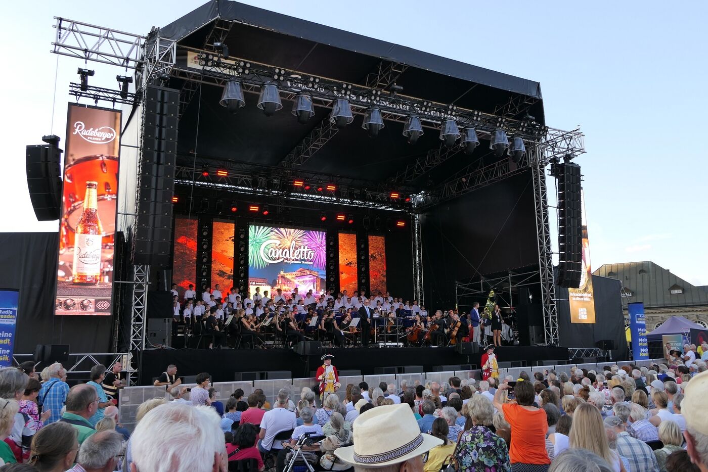 Dresden ist wieder in Feierlaune! Das Stadtfest „Canaletto“ wurde am Freitagabend von Oberbürgerrneister Dirk Hilbert auf der Bühne am Theaterplatzeröffnet. Anschließend spielten dort die Philharmonie und der Kreuzchor ein gemeinsames Konzert.
