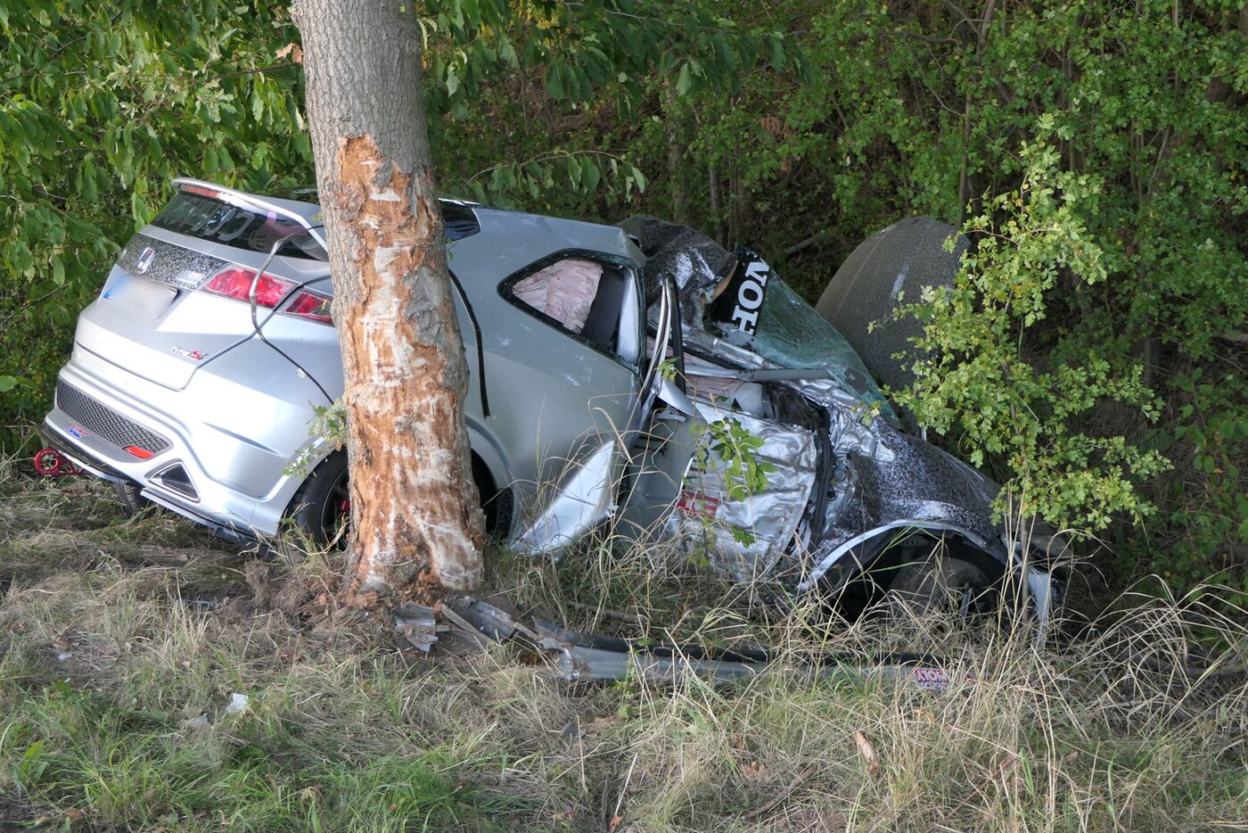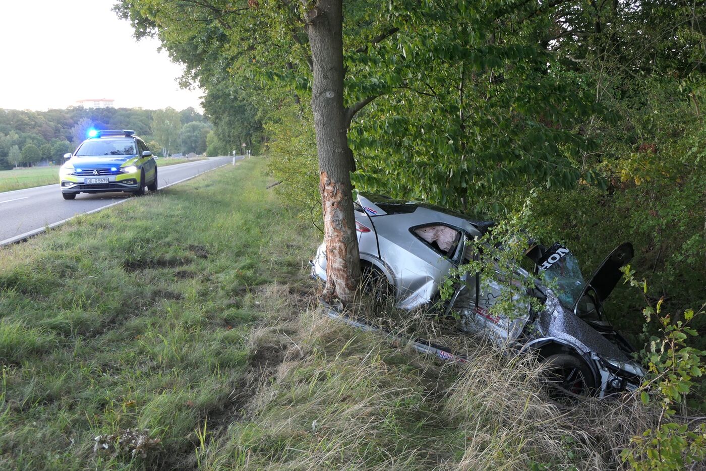 Schwerer Unfall am Donnerstagabend auf der B107 zwischen Nimbschen und Grimma östlich von Leipzig. Kurz vor 18 Uhr hat dort ein 21-jähriger Honda-Civic-Fahrer versucht zu überholen. Dabei übersah er offenbar den Gegenverkehr. Er wich zur Seite aus, verlor die Kontrolle über den Wagen und krachte seitlich gegen einen Straßenbaum.