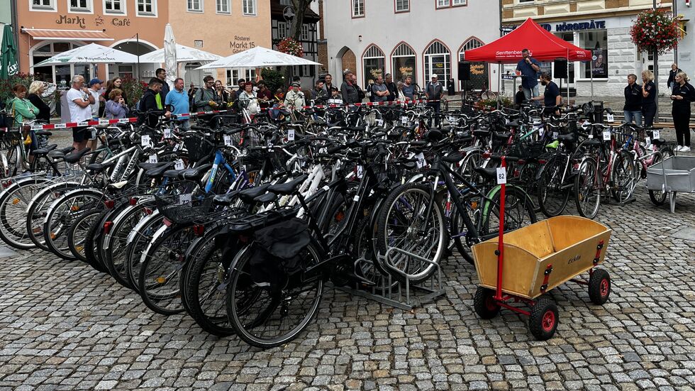 Zum Ersten, zum Zweiten, zum Dritten... Auf dem Senftenberger Marktplatz sind Fund-Fahrräder versteigert worden. Sie wurden zum Startpreis von drei Euro aufgerufen. Begehrt waren vor allem E-Bikes. Bieter machten Schnäppchen. So ging ein Elektro-Fahrrad für 192 Euro weg.