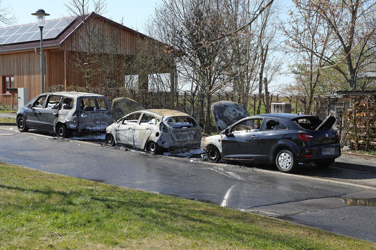 In Niederschöna (Gemeinde Halsbrücke) sind am Samstagnachmittag drei Fahrzeuge in Flammen aufgegangen. Laut den Informationen unseres Reporters brannten drei geparkte Autos, die hintereinander auf der Falkenberger Straße standen.