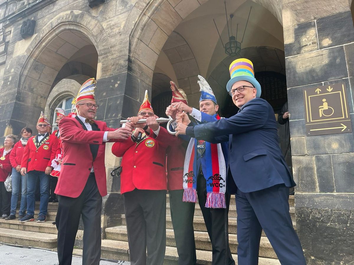 Pünktlich zum 11.11. um 11:11 Uhr die Karnevalsvereine unserer Stadt das Zepter im Rathaus übernommen. Oberbürgermeister Sven Schulze übergab nach zwei Jahren Coronapause wieder ganz traditionell den Rathausschlüssel. Auf dem Marktplatz präsentierten sich dazu die Funkengarden und es gab natürlich auch Büttenreden.