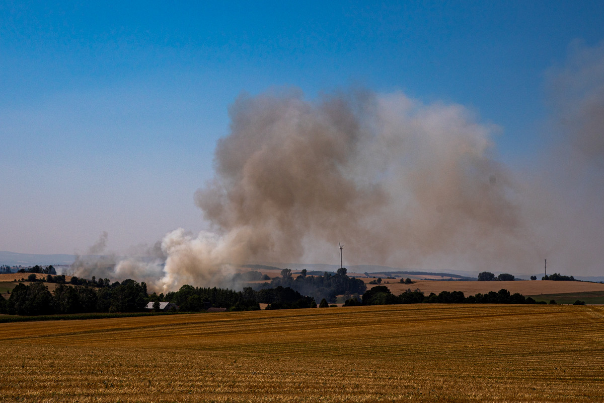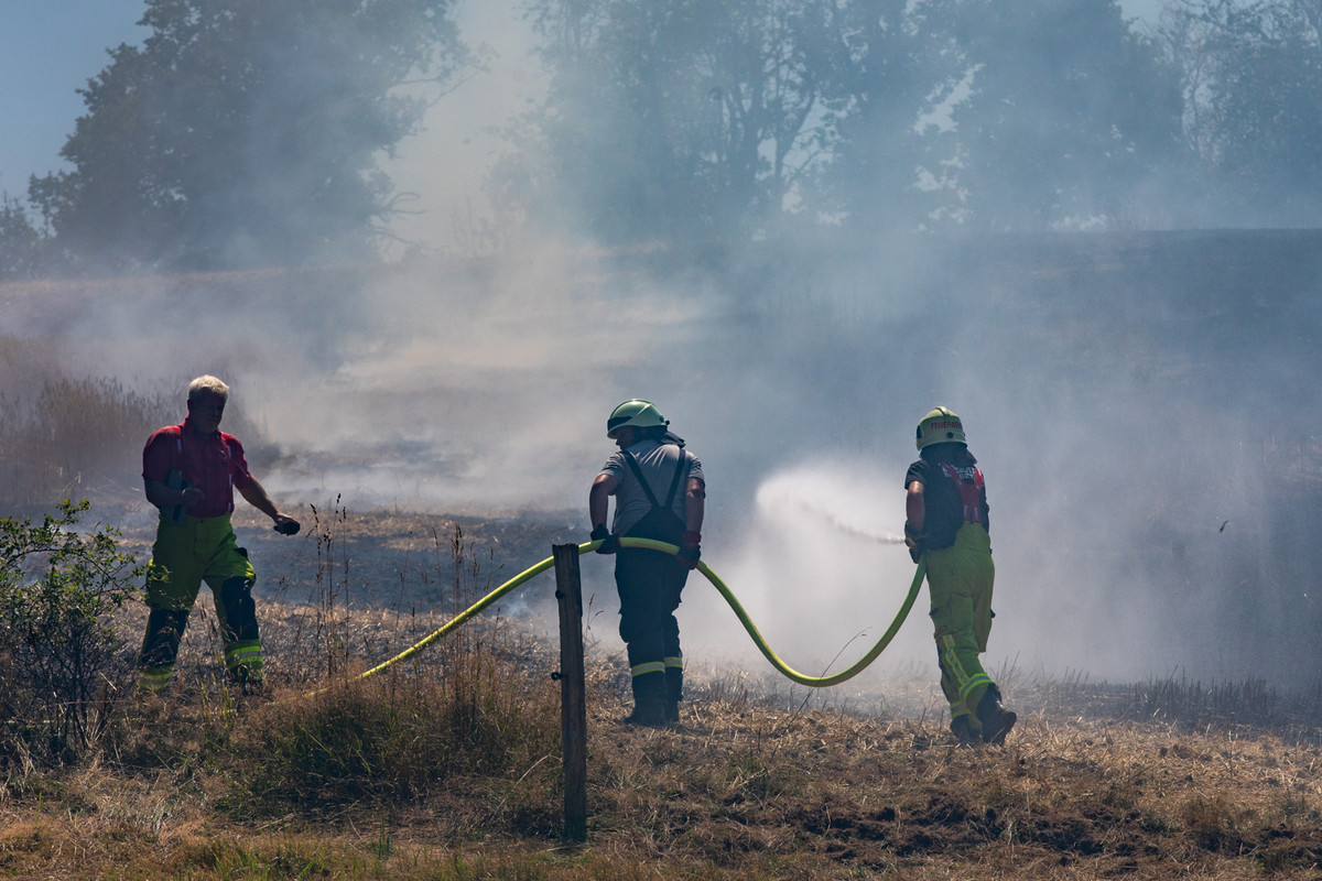 Die Feuerwehr hat am Montagmittag einen Feldbrand in Rückersdorf bei Neustadt/Sachsen gelöscht. Nach ersten Informationen stand eine Fläche von etwa 10 Hektar in Flammen. Die Rauchsäule war kilometerweit sichtbar, berichtet unser Reporter. Über 60 Kameraden konnten den Brand mit Unterstützung von Landwirten aber rasch unter Kontrolle bringen und ein Übergreifen der Flammen auf weitere Felder und Wälder verhindern.