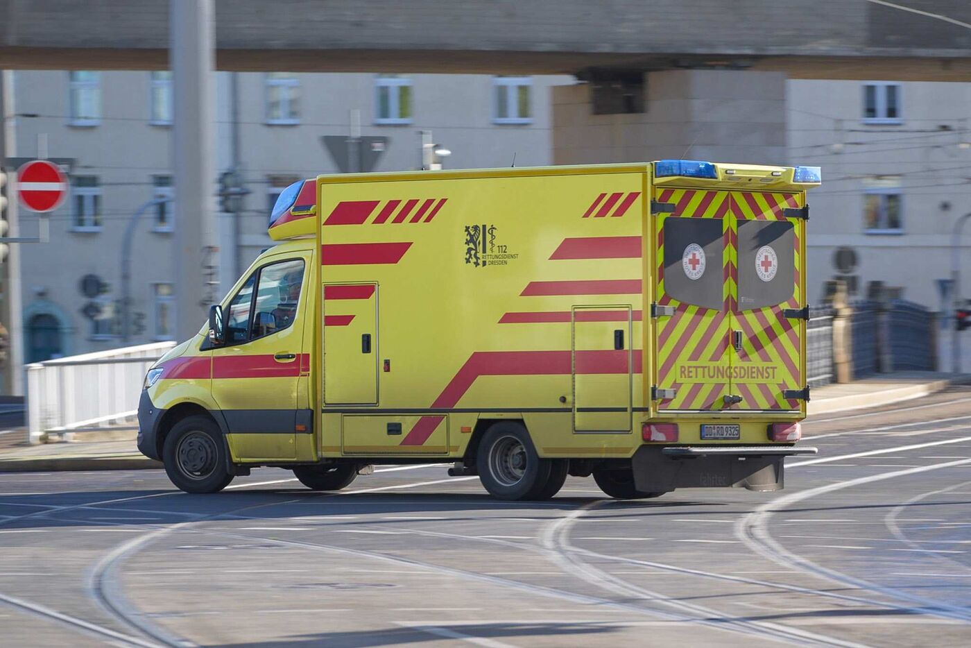 Ein Krankenwagen auf der Tharandter Straße in Dresden.