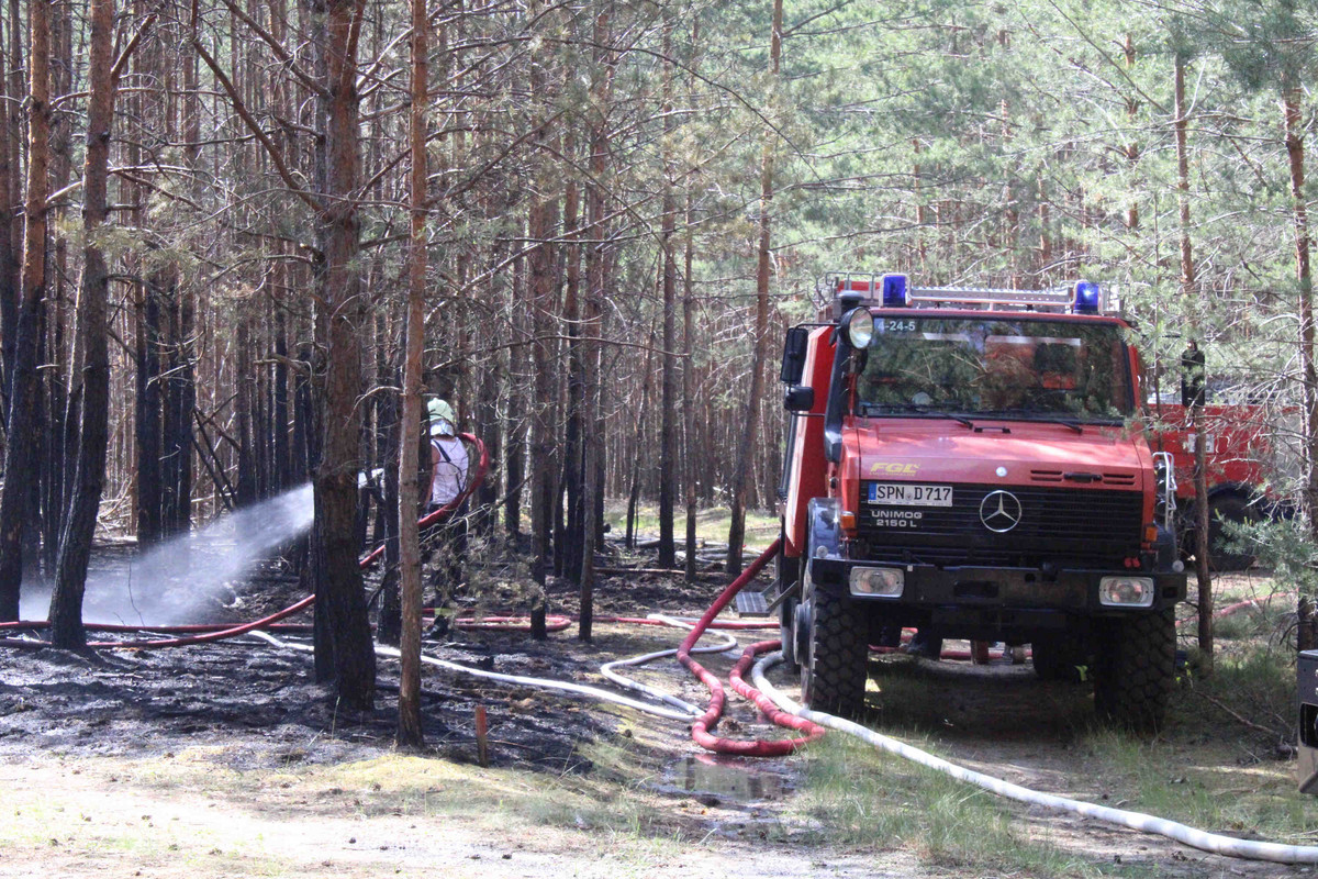 80 Feuerwehrleute haben einen Waldbrand an der brandenburgisch-sächsischen Grenze bei Spremberg bekämpft. In einem Wald bei Graustein loderten gestern Nachmittag Flammen auf zusammengefasst rund 2.000 Quadratmetern. An mehreren Stellen brach das Feuer aus. Es wird deshalb von Brandstiftung ausgegangen. Die B156 zwischen Graustein und Spremberg war während der Löscharbeiten gesperrt.Ermittlungen wurden aufgneommen, Spuren gesichert und dokumentiert.