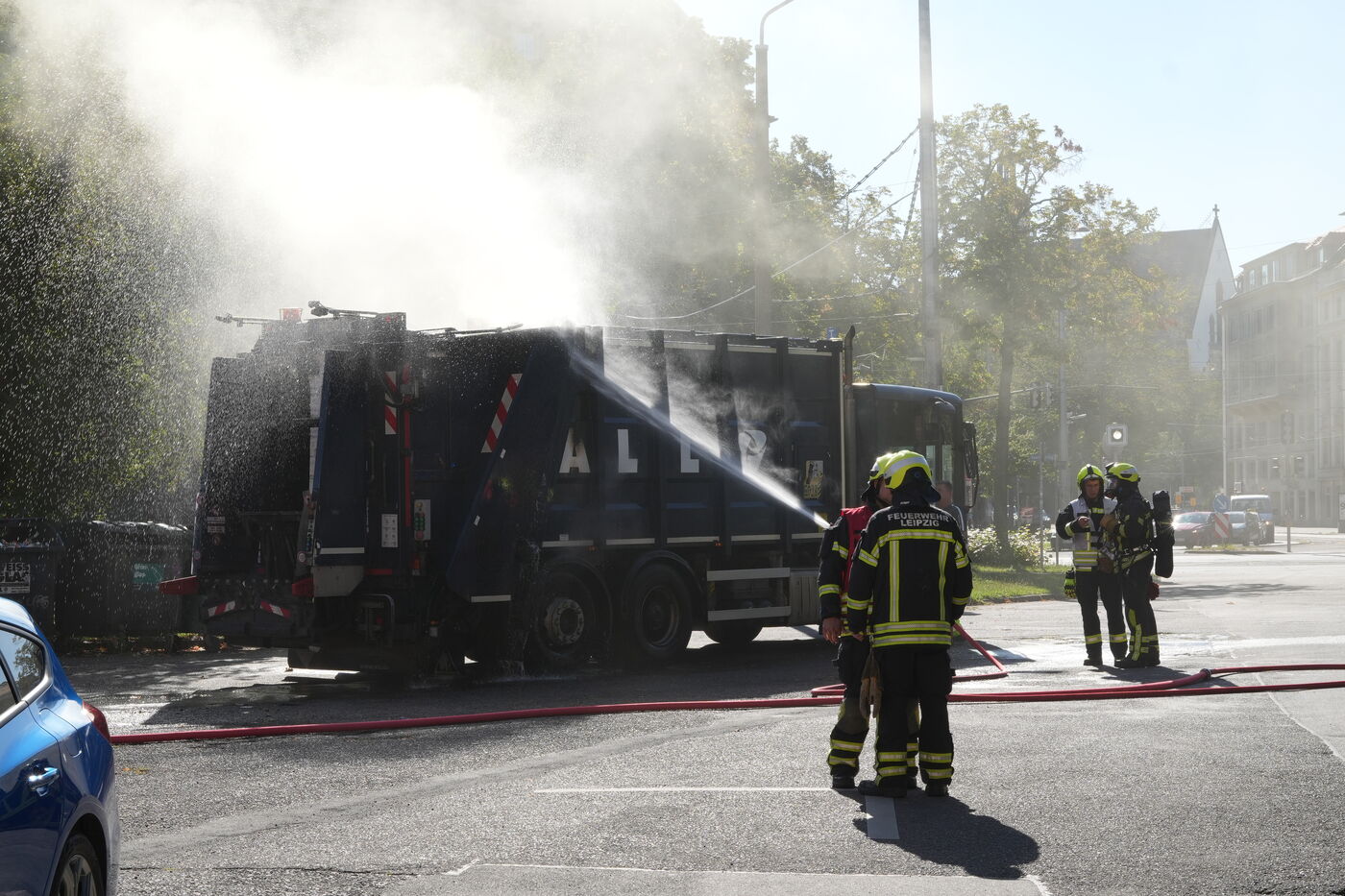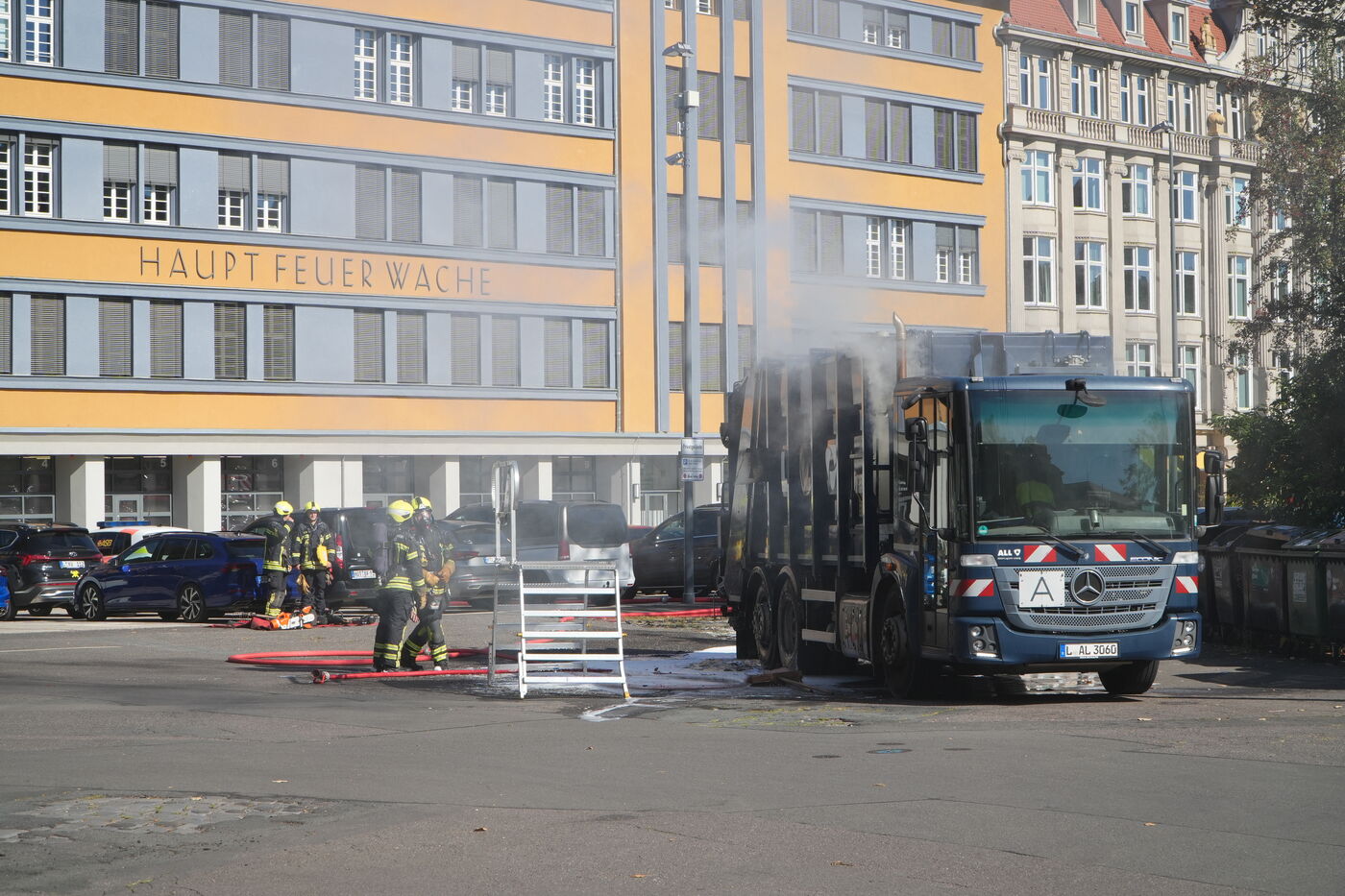 Kurioser Einsatz für die Leipziger Feuerwehr am Bayrischen Bahnhof: Mehrere Kameraden waren am Montagnachmittag mit einem Löschfahrzeug unterwegs, als sie ein qualmendes Müllauto bemerkten. Gemeinsam ging es dann direkt zur Hauptfeuerwache. Dort konnte es letztlich gelöscht werden. Brandursache und Schadenshöhe sind noch unklar.