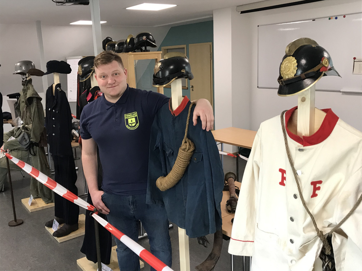 Chris Findeisen von der Feuerwehr Großrückerswalde hat die Sachen zusammengetragen.