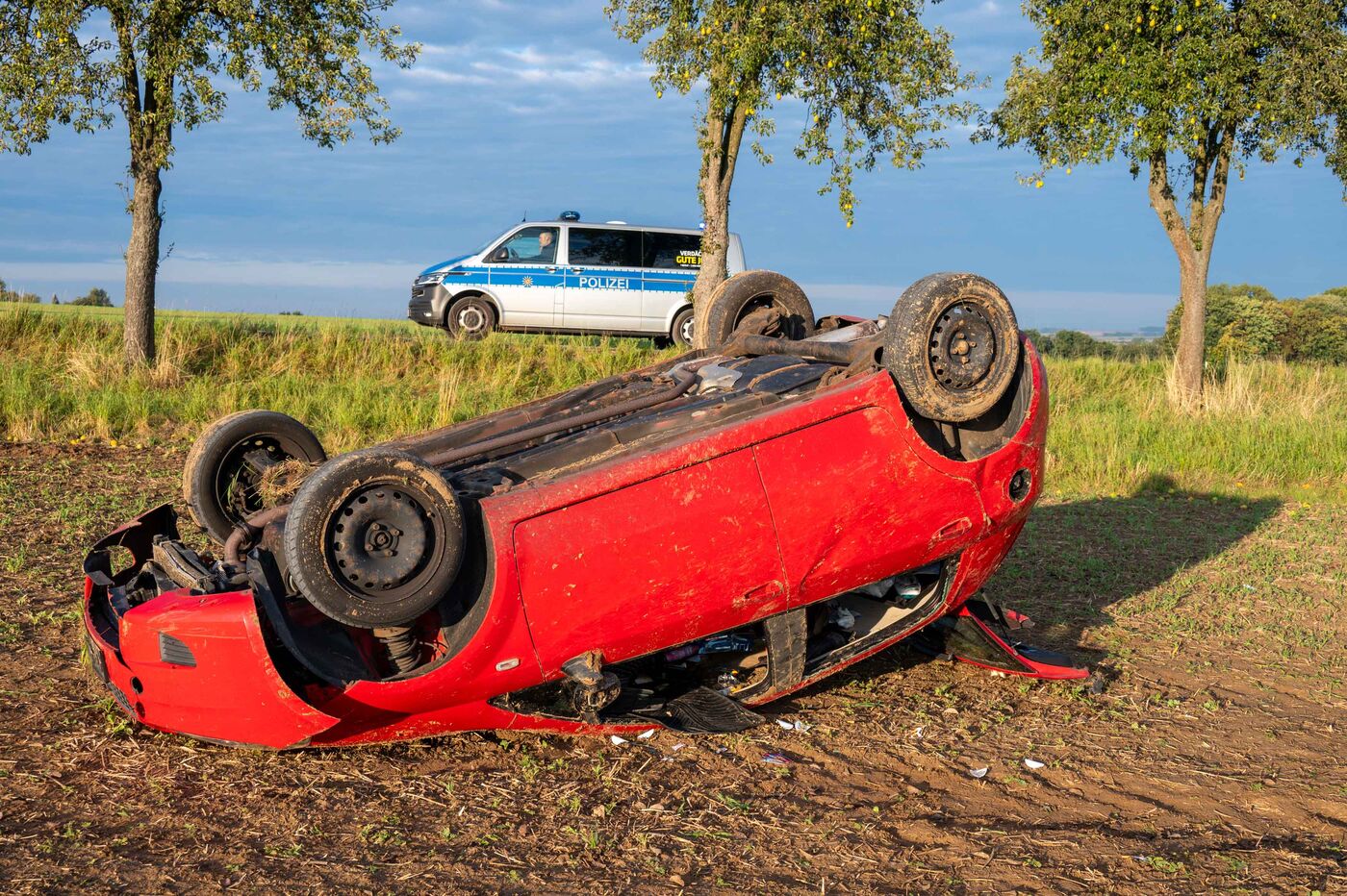 Das Auto wurde bei dem Überschlag schwer beschädigt.