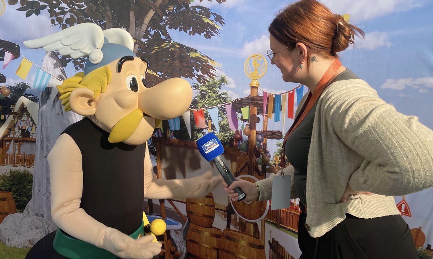 • Asterix stellte sich am Donnerstag bei der offiziellen Präsentation seines neuen Freizeitparks den Fragen von Radio-Reporterin Clarissa Kunath.