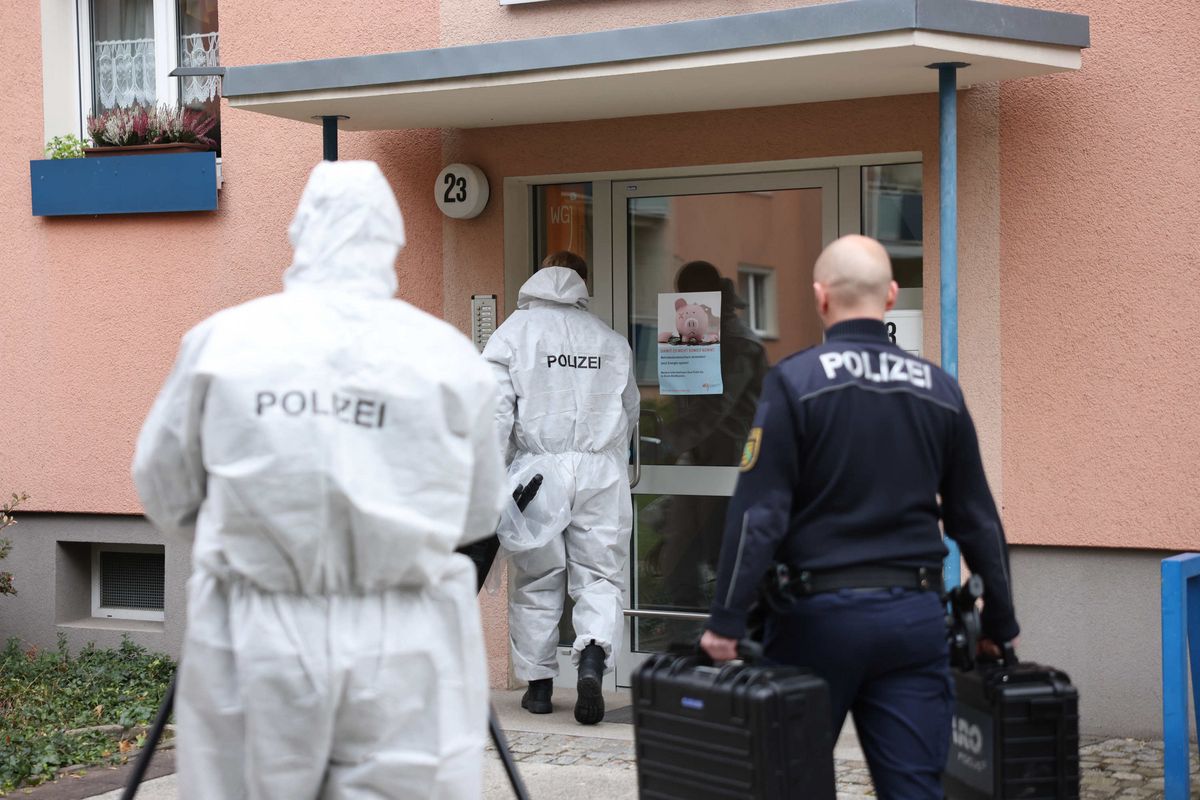 Kriminaltechniker auf dem Weg zum Tatort in Striesen.