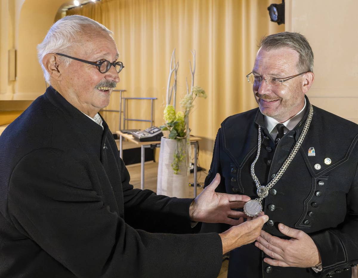 Der dienstälteste Stadtrat Dr. Volker Benedix Oberbürgermeister legte Sven Krüger die Amtskette um, in der Nikolaikirche in Freiberg.