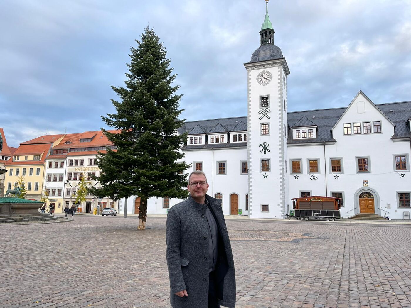 Auch Freibergs Oberbürgermeister Sven Krüger freut sich über den schönen Baum.