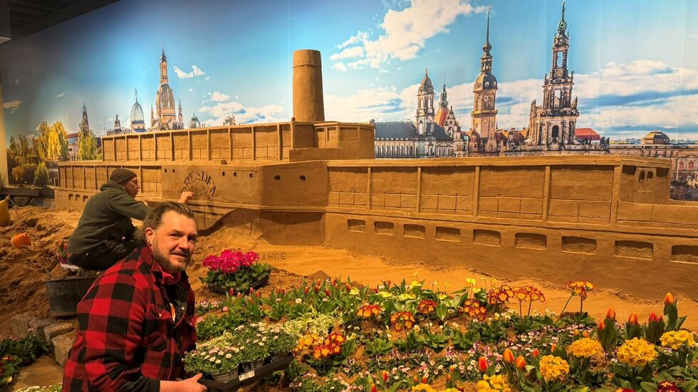 Die „Blüten-Wunder-Ausstellung“ im Freitaler Freizeitpark „Oskarshausen“ nimmt weiter Gestalt an. Am 5. Februar öffnet die weltweit einzigartige Naturkunstausstellung für Besucher ihre Türen. Bis dahin gibt es noch viel zu tun. Aus 230 Tonnen Sand werden derzeit Sandskulpturen geformt. Das Motto lautet: „Von Flüssen, Seen und Mee(hr)r“. Ergänzt werden die Motive von echten Pflanzen. Ein besonderes Highlight ist der über 10 Meter lange „Personendampfer Dresden“ der Weißen Flotte. Diese feiert in diesem Jahr ihr 190-jähriges Jubiläum. Besucher können sich aber auch auf den Leuchtturm von Moritzburg oder eine Meerjungfrau freuen. Das Team von Oskarshausen packt kräftig an, doch auch Experten aus dem In- und Ausland sind vor Ort, so Theresa Tamme von Oskarshausen.