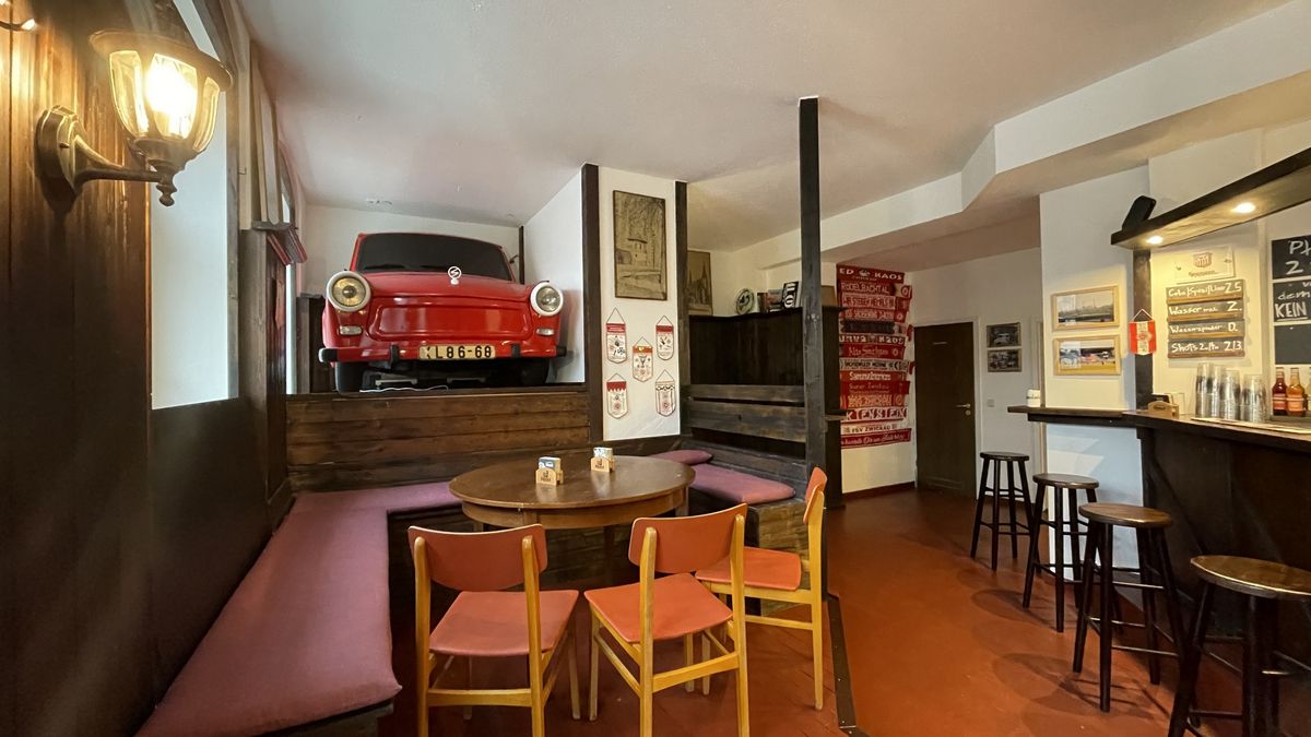 Der Verein hat sich der Traditionspflege verschrieben. Das sieht man im Lokal: Wimpel, Bücher, Ansetzungsplakate und ein Trabi als Blickfang. Klar, Sachsenring. Zwickauer Fußball-Utensilien aller Art sammelt der Verein. Und wer zuhause noch Interessantes im Schrank hat – her damit, sagt Sascha.