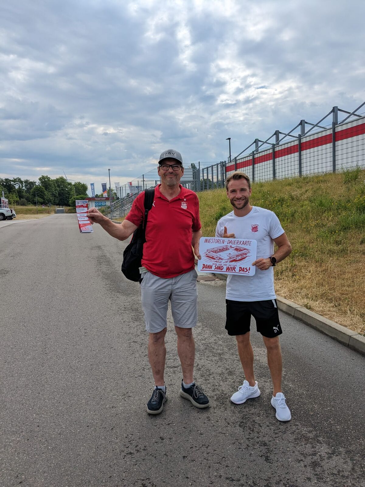 Der erste "Dauerkarten-Investor" Thomas Drescher und FSV-Spieler Mike Könnecke.