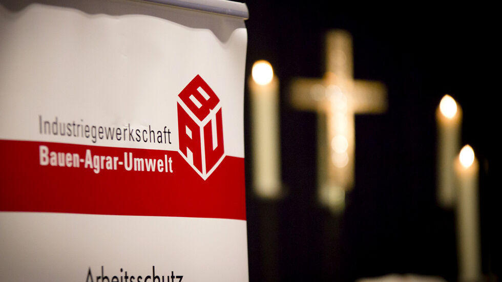 Bundesweit gedenkt die IG BAU der Opfer von Arbeitsunfällen und Berufskrankheiten mit einem ökumenischen Gedenkgottesdienst mit muslimischer und jüdischer Beteiligung in der Berliner Gedächtnis-Kirche sowie mit einer Trauerfeier im Fußballstadion „AufSchalke“ in Gelsenkirchen.