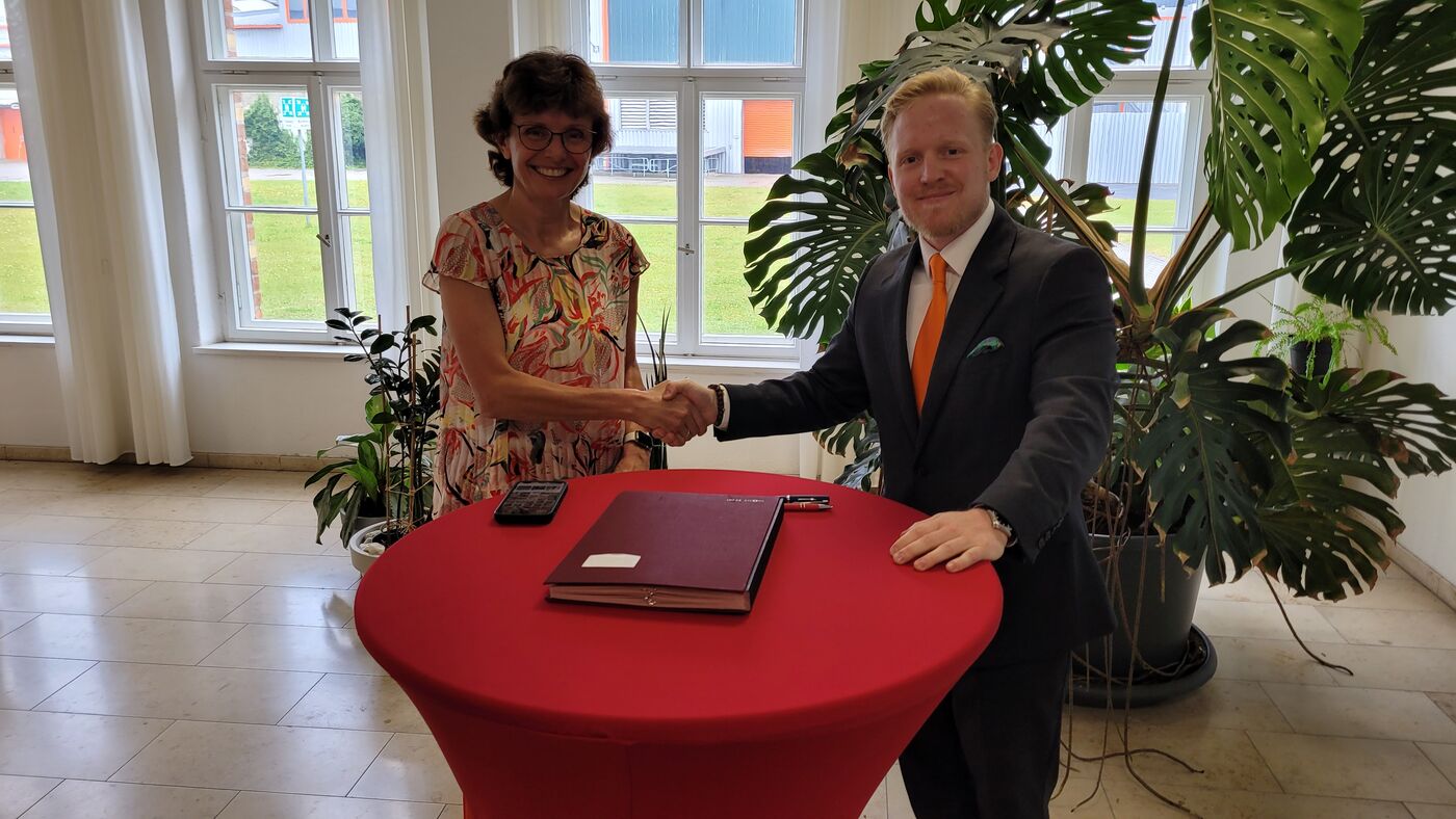 Absichtserklärung unterzeichnet - Stadtwerke-Chefin Katrin Bartsch und Stoelzle Lausitz-Geschäftsführer Leopold Grupp