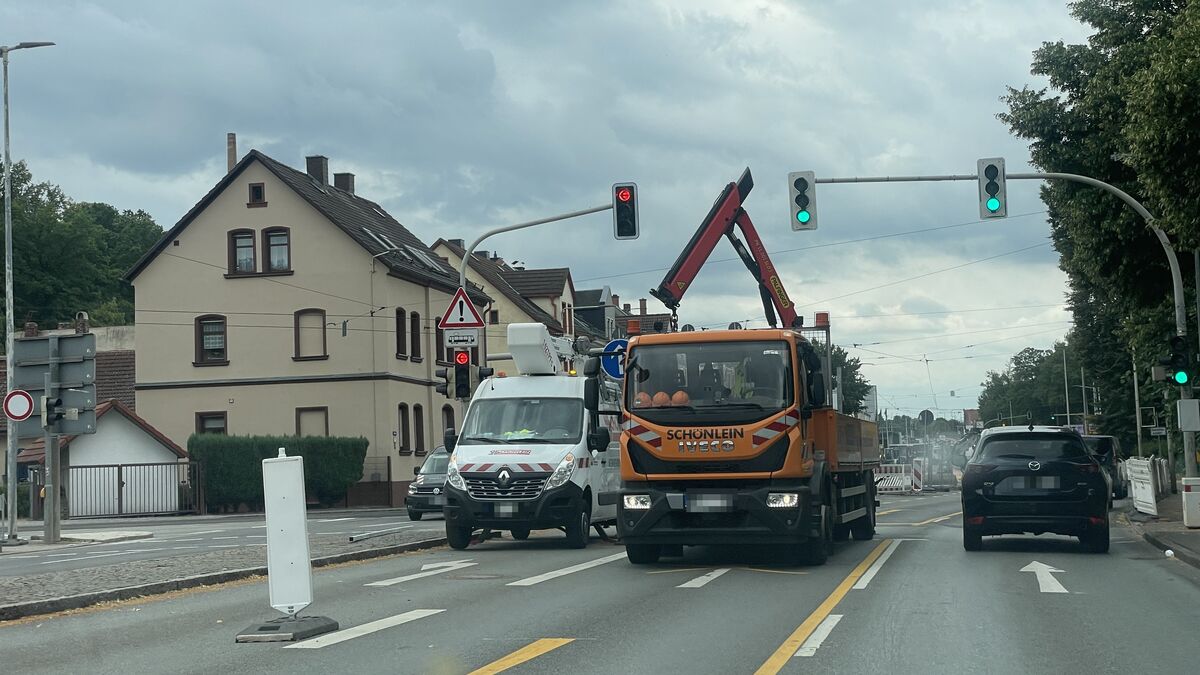 Im zweiten Bauabschnitt, der sich direkt anschließt, wird auf der Talstraße an der Haltestelle und an der Entwässerung gebaut. Es fährt weiter Schienenersatzverkehr.
