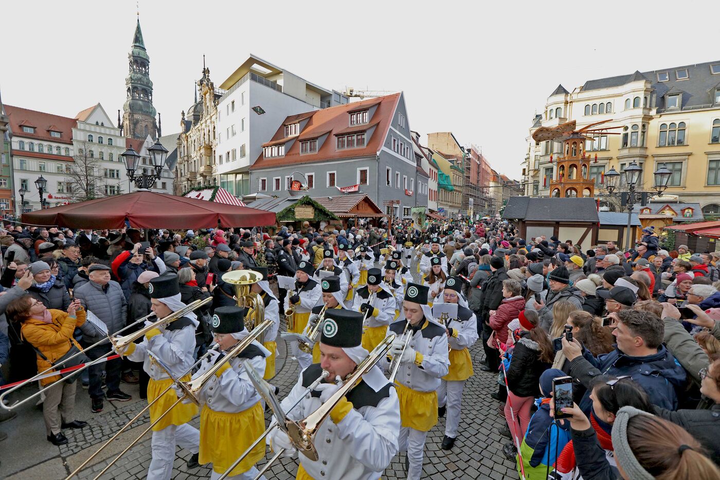 Rund 400 Habitträger und Bergkapellen ziehen am Samstagnachmittag durch Zwickau und stimmen auf Weihnachten ein. Start ist 14 Uhr auf dem Platz der Völkerfreundschaft. Von dort geht es über die Hauptstraße, den Hauptmarkt und den Kornmarkt bis zum Domhof, wo ein feierliches Bergkonzert gespielt wird.