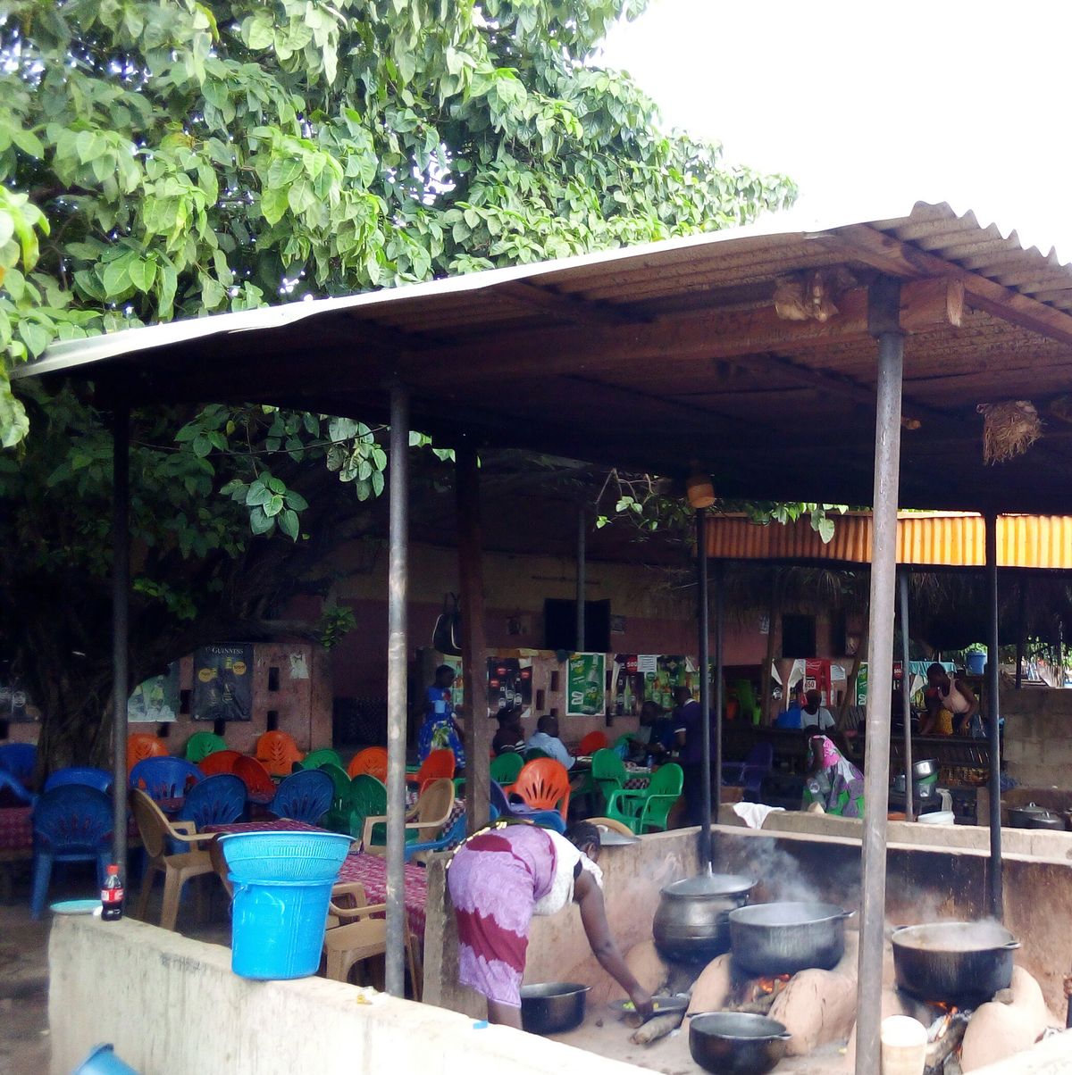 Das Bushmeat Restaurand in Toumodi (Elfenbeinküste). In Garküchen ist Wildfleisch wie Rohrratten oder Primaten ein fester Bestandteil der Speisekarte