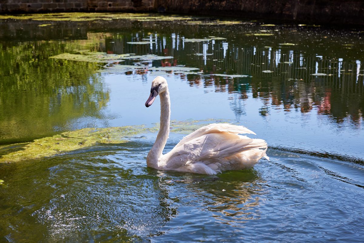 Auf dem Teich vor dem Jagdschloss werden seit 1933 Schwäne gehalten.