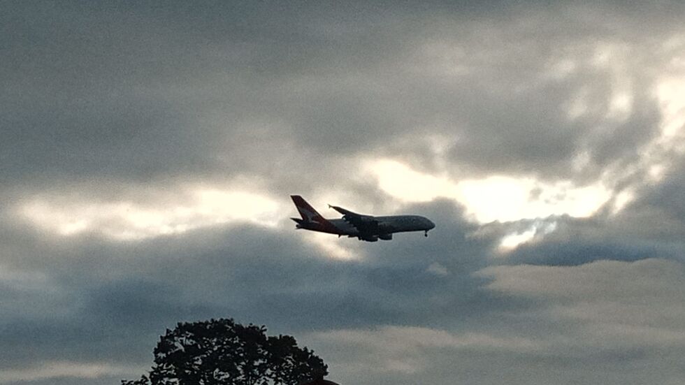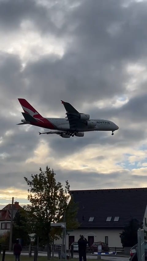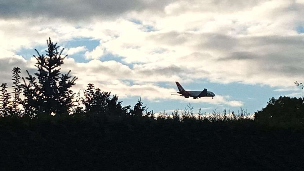 - Der A380 über Weixdorf im Landeanflug auf Dresden.