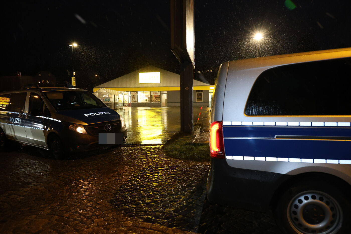 - Der Parkplatz zum geräumten Markt wurde abgesperrt.