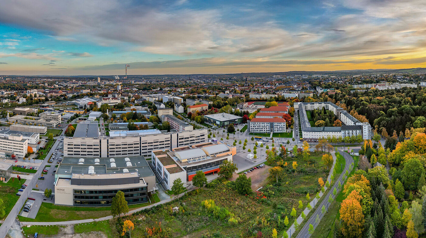 - Blick auf den Campus der TU Chemnitz an der Reichenhainer Straße.