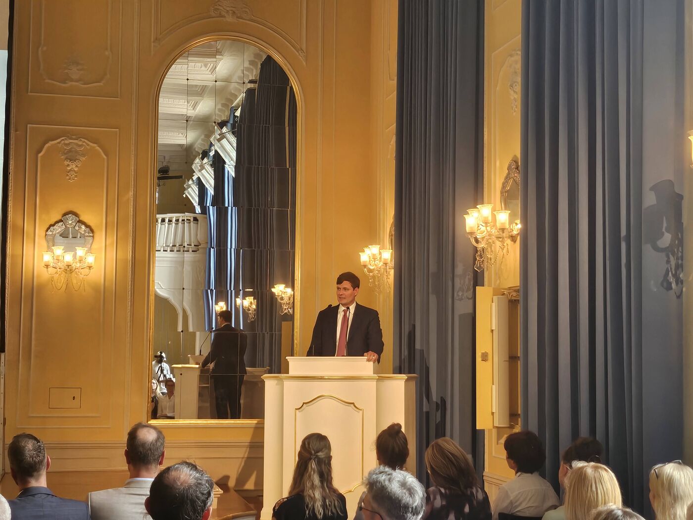Conrad Clemens, Kultusminister Sachsen, beim "Handygipfel" im RoRo Gymnasium Dresden