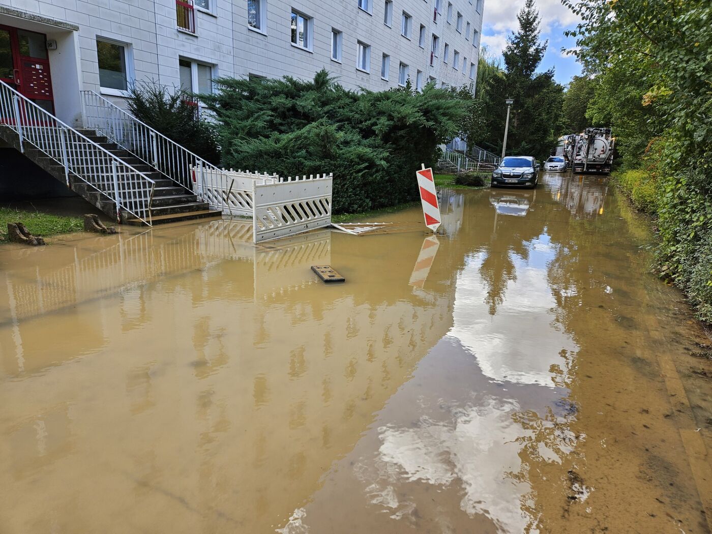 Aufgrund eines Schadens an einer Wasserleitung ist es heute Vormittag in Teilen von Leipzig-Grünau zu Überschwemmungen und dem Ausfall der Wasserversorgung gekommen. In der Alten Salzstraße bildete sich ein großes Loch, das für eine Unterspülung sorgte, berichtete ein Reporter vor Ort. Auch Teile eines angrenzenden Parks waren demnach überschwemmt. Vom Ausfall der Wasserversorgung waren Gebäude von Grünau über Lausen bis Markranstädt betroffen.